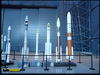 une fusée. Au cours de son ascension elle se sépare successivement de ses propulseurs d'appoint puis de son réservoir externe.