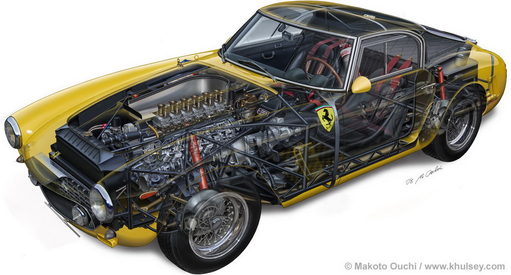 En compétition, on s'accorde souvent à dire que la longueur idéale d'un châssis est 2400mm, configuration qui allie à la fois performance en ligne droite et maniabilité en courbe, Ferrari signe donc avec les 250 GT