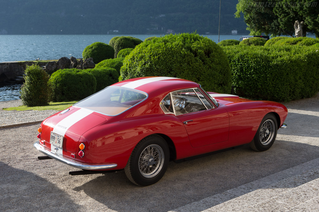 sans charnières. Côté puissance, le moteur développe de 235 à 260 ch selon les réglages et l'utilisation prévue tandis que le châssis, à structure tubulaire issue de la 250 GT Boano/Ellena, se distingue par des