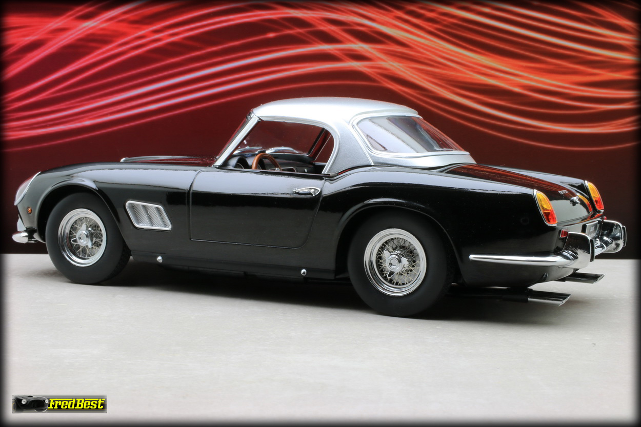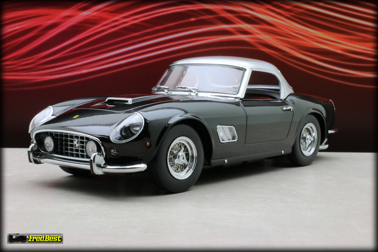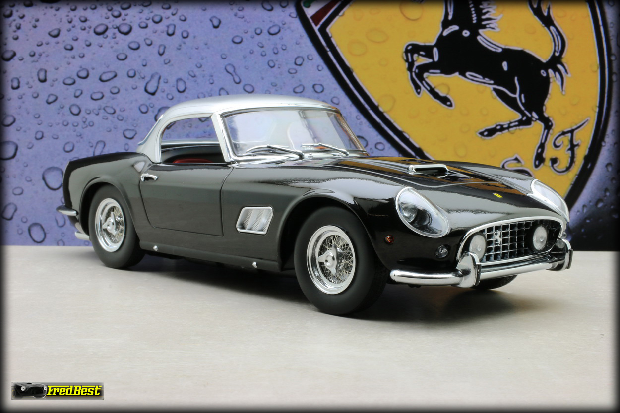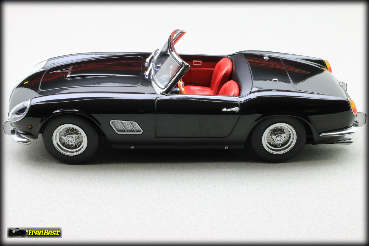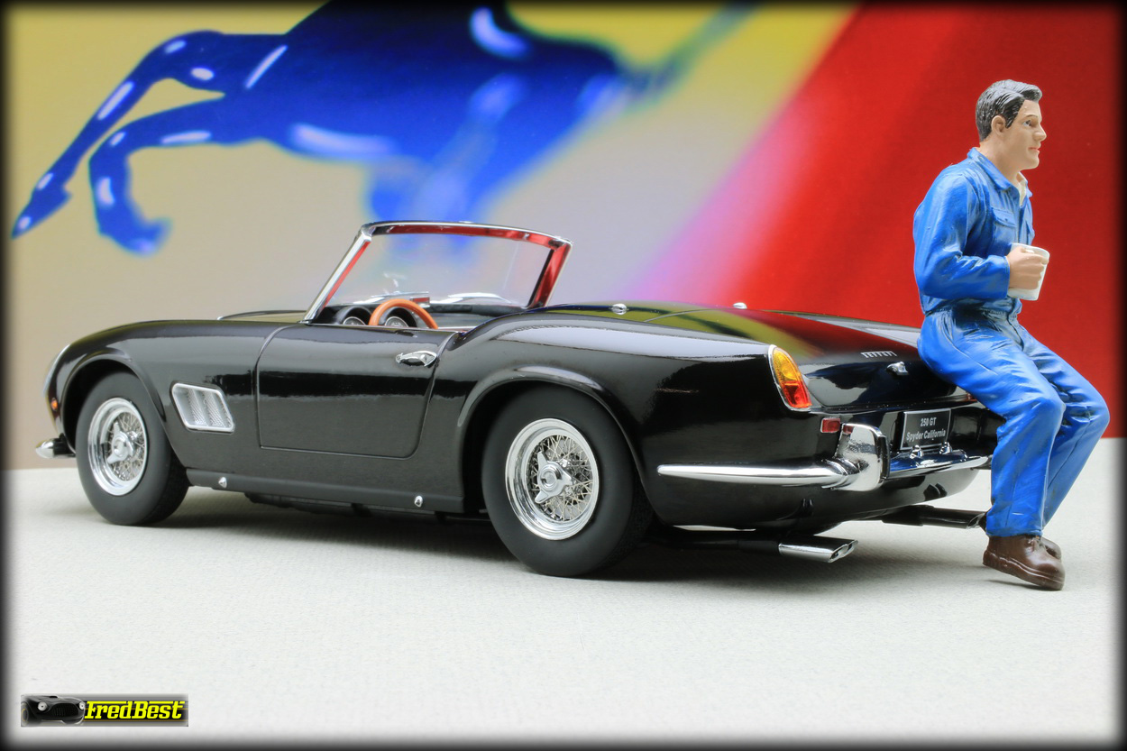 2023, KK-Scale sort plusieurs déclinaisons de la 250 GT California Spyder dont la convoitée noire à toit gris, je me la suite offerte. Contrairement aux vieilles Hotwheels et leurs carrosseries difformes, cette KK-Scale