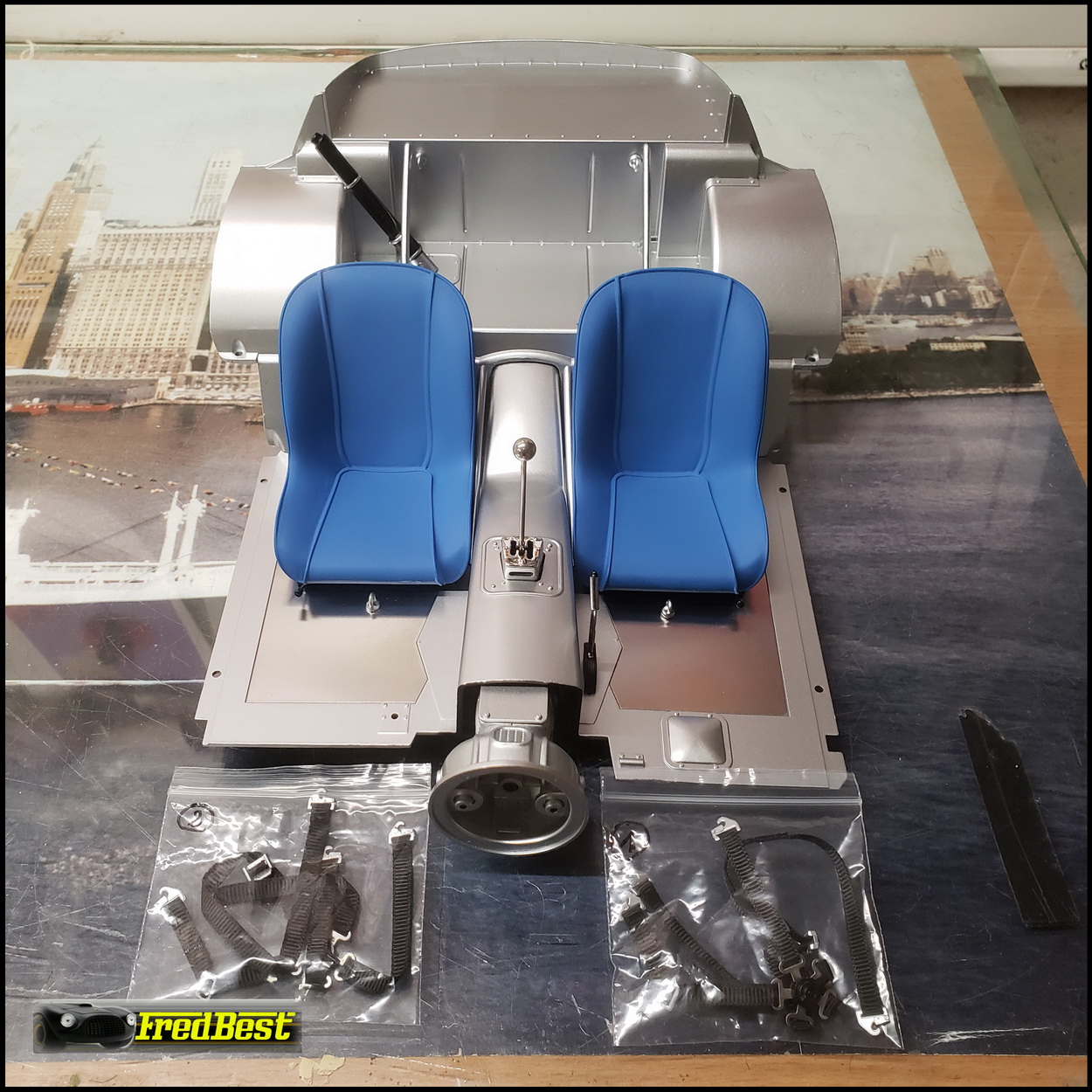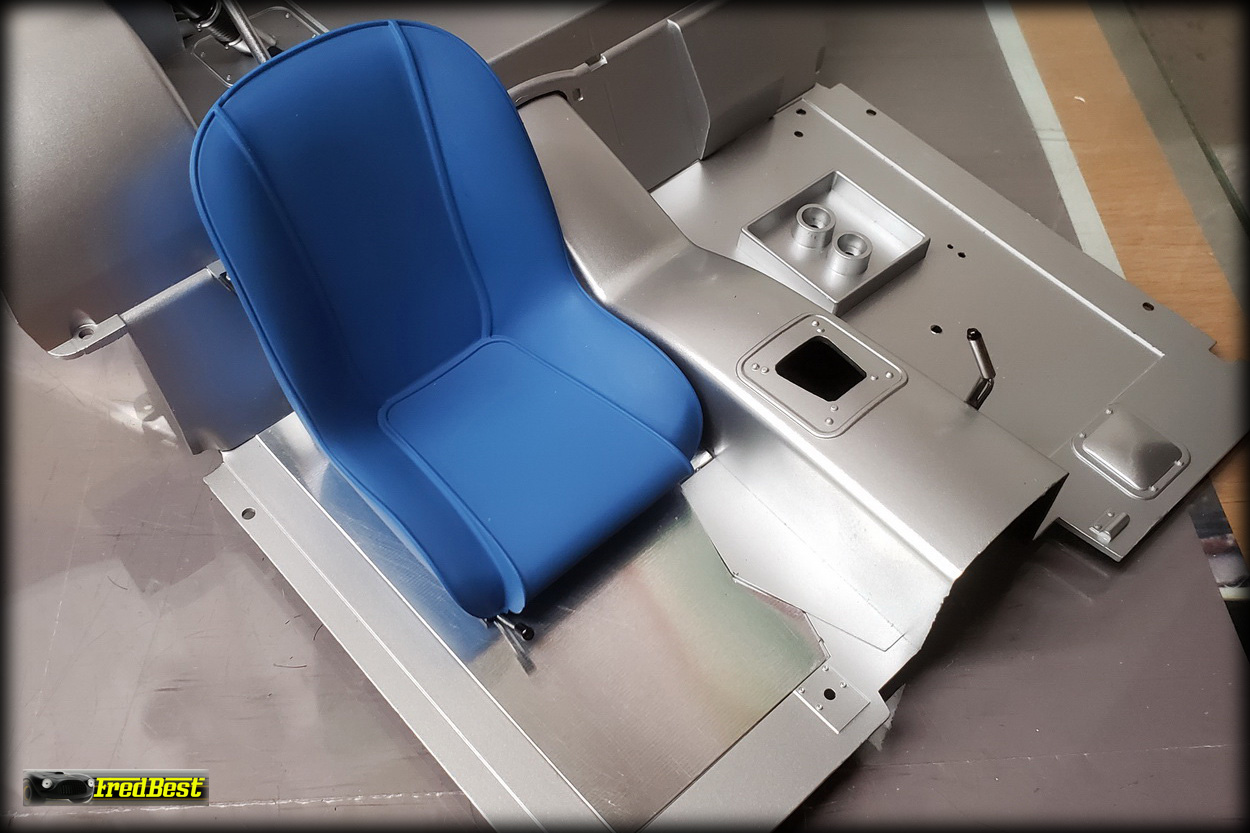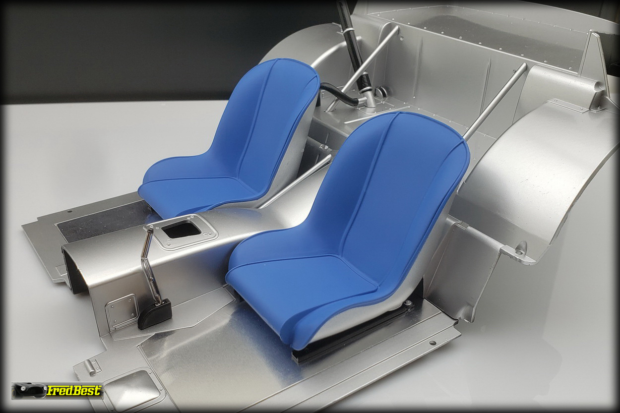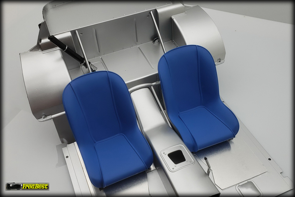 Récemment, j'ai repris les sièges fournis sur ce kit, loin du confort de nos voitures actuelles, ceux d'une 250 GTO n'étant qu'une toile tendue sur une coque en aluminum. J'ai donc repeint