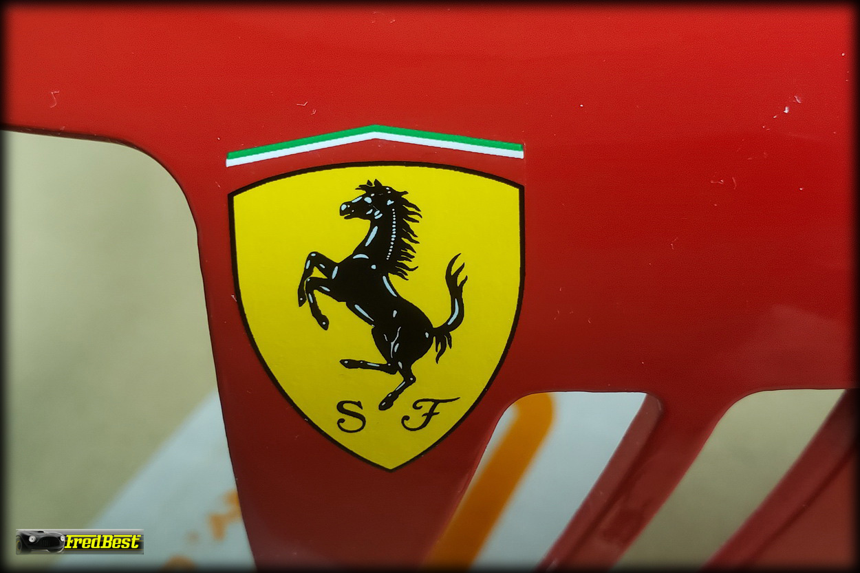 Aucune GTO d'époque ne possède de Scudetto sur ses ailes et encore moins 3987GT à Montlhery. Il faut donc les supprimer, pour cela j'utilise délicatement un coton imbibé de dissolvant sans acétone !