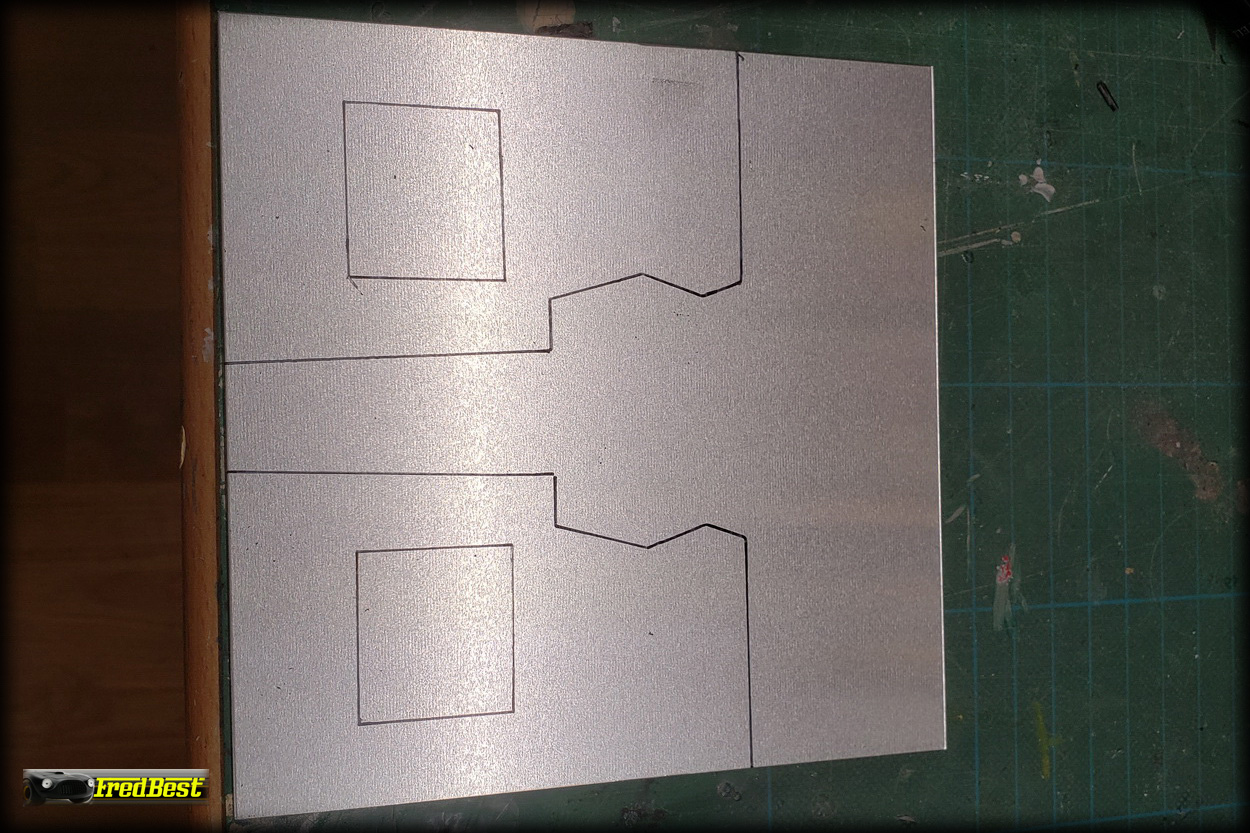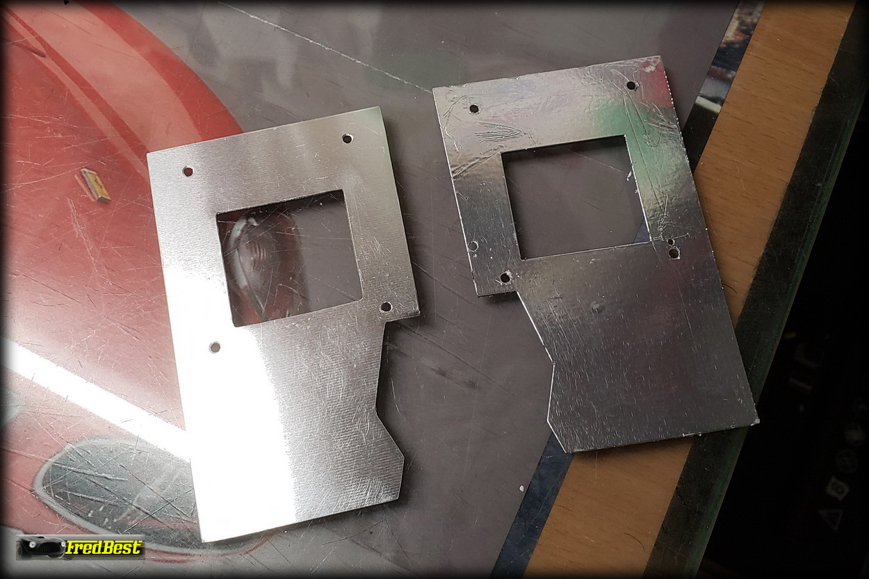 Sur la toile, je me suis dégoté de fines plaques d'aluminium de 0,5 mm d'épaisseur. Grâce à elles, j'ai pu, à grand renfort de Dremel, me redécouper de nouveaux planchers sans ces fameux trous de harnais.