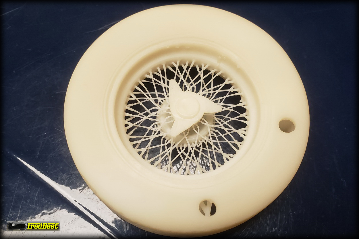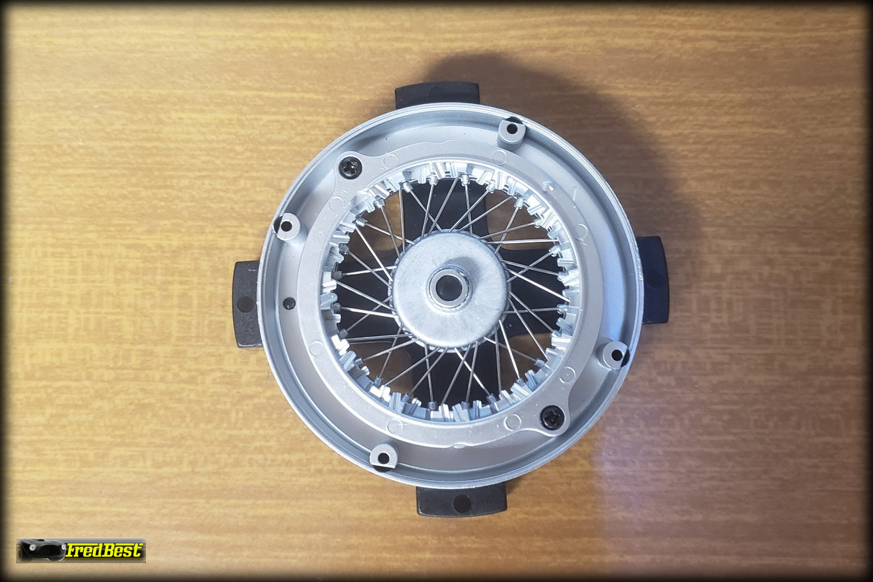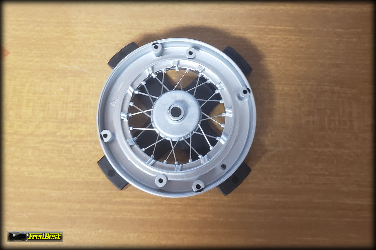 Modification du différenciel de pont arrière: passage en noir des centres comme sur la voiture 1/1 et ajout de douze boulons sur le pourtour extérieur, dégoté sur le net et imprimés en 3D résine.