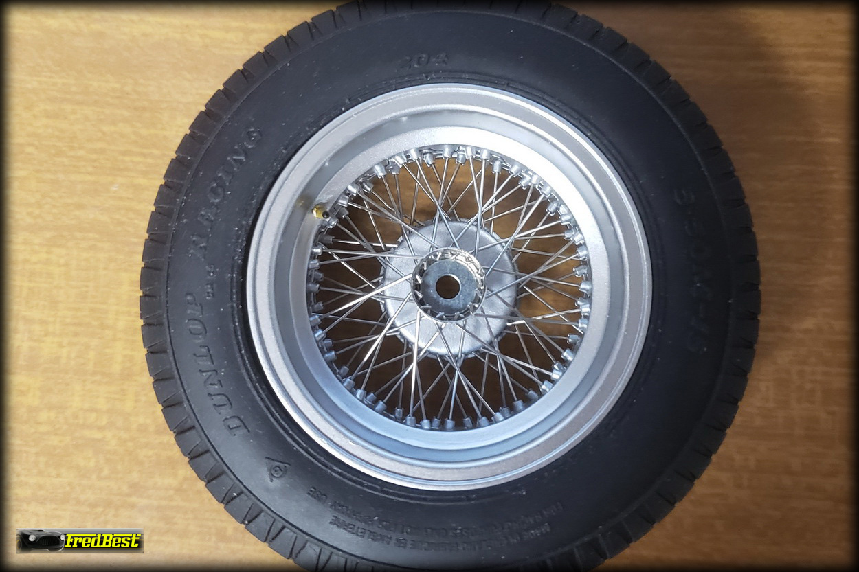 Au final, il m'aura quand même fallu deux bonnes heures pour assembler les quatre couches de rayons, 72 au total, et voir cette première roue terminée avec son pneu. Courage encore 3 ...