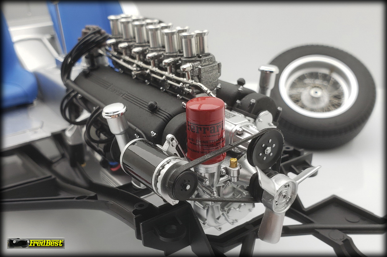 Lorsque 3987GT, aux mains des frères Rodriguez, remporte les 1000 Km de Paris 1962, l'intérieur de ses phares n'était pas rouge comme sur notre modèle au 1/8eme mais gris alu. Encore une erreur d'Agora qu'il