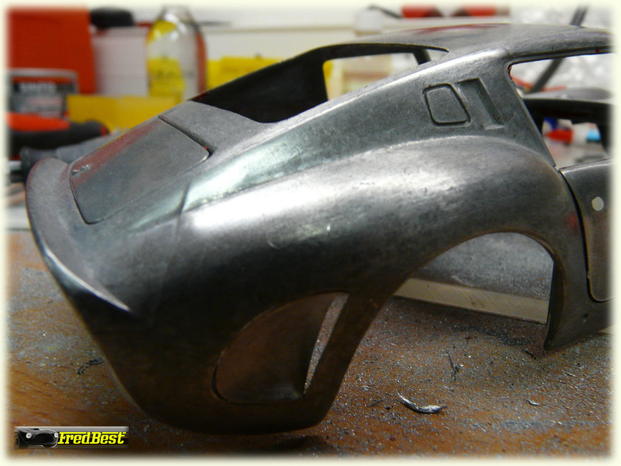Le premier travail à faire est la suppression de ces horribles ailettes sur la prise d'air arrière pour les remplacer par les caches arrondis livrés