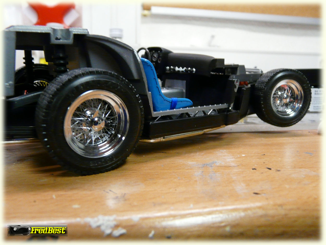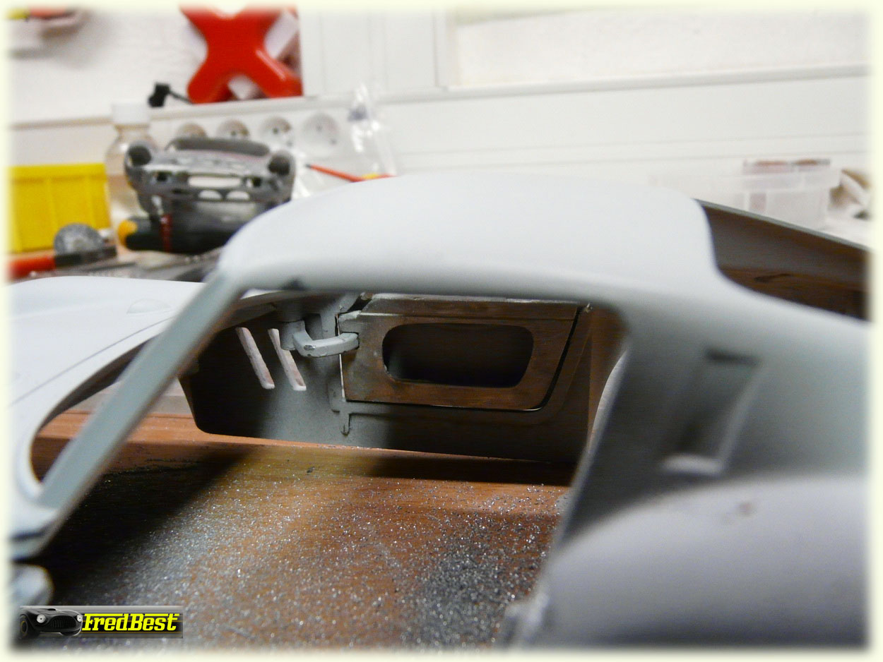La peinture est désormais terminée, voici un petit montage à blanc de la coque sur son chassis, avant de passer le toit en blanc, d'y apposer