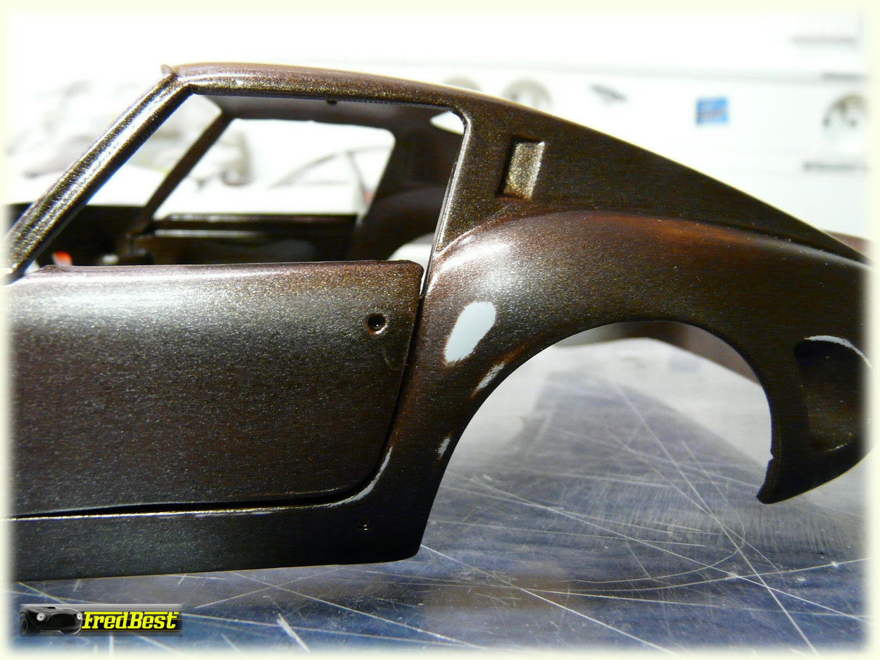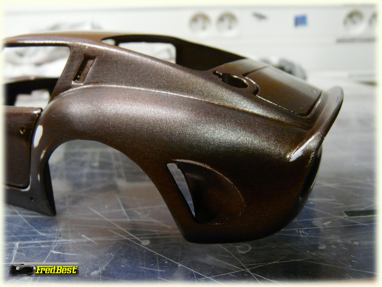 Première couche de marron, couleur spécifique à ce modèle, et rattrapage des derniers défauts.