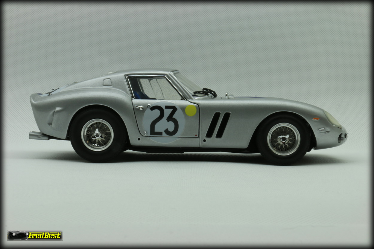 La miniature que vous allez découvrir est 3769GT, lors des 24H du Mans 1962, livrée qu'elle arbore aujourd'hui depuis sa restauration de 1996. N'existant pas au 1/18, il a fallu se retrousser les manches