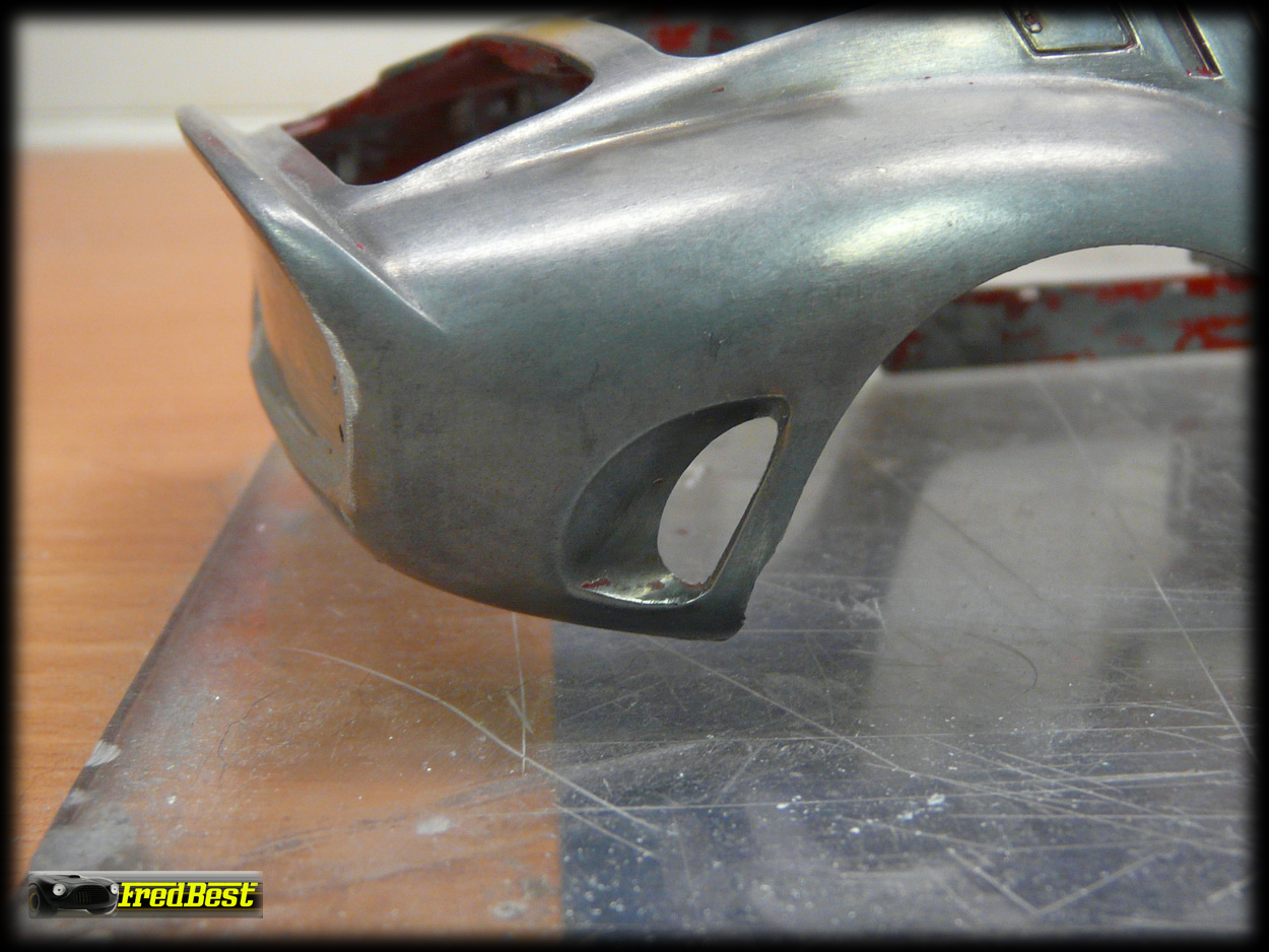 Comme à mon habitude lors de modification de carrosserie, je passe une première couche de mastic en bombe, histoire