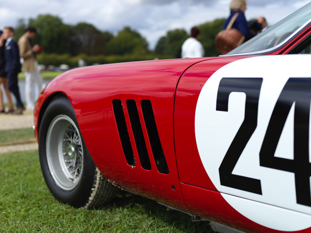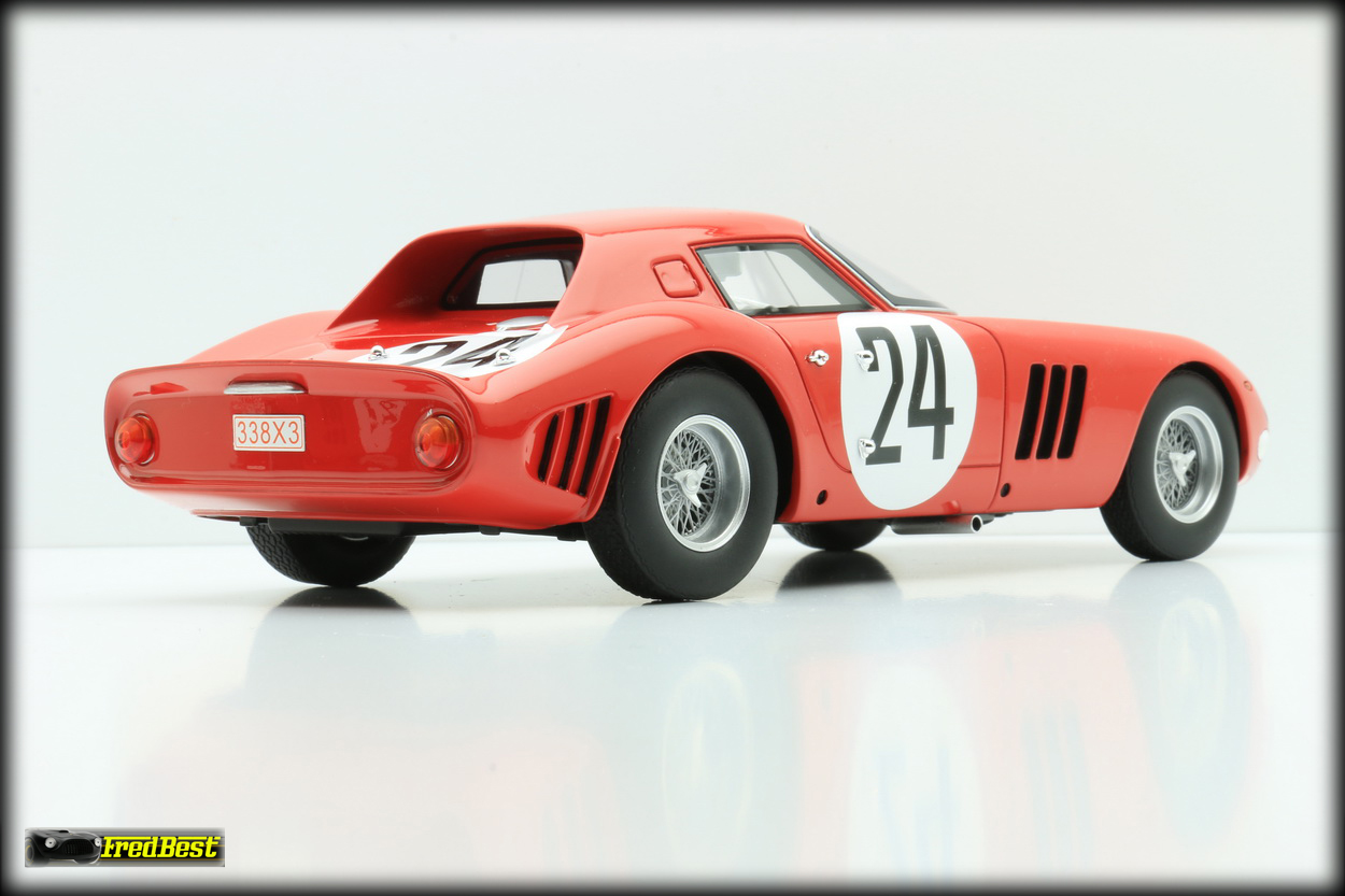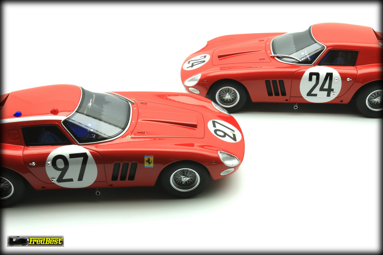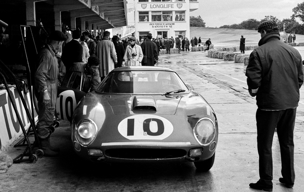 avec une prise d'air permettant un apport plus important d'air froid au moteur. Confié aux soins de Lucien Bianchi et Jean "Beurlys" Blaton pour la course mancelle de 1964, cette 250 GTO, se