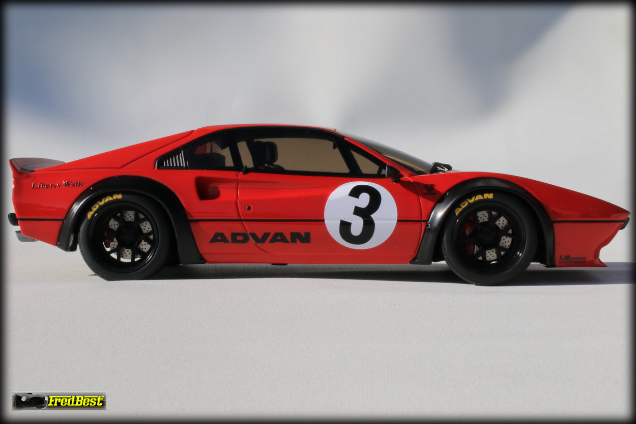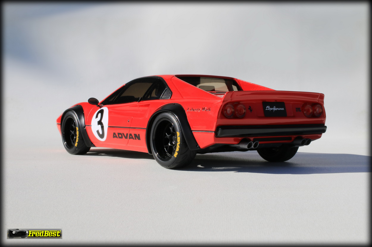 caractéristique de Liberty Walk, notre 308 reçoit bien évidemment de nouvelles jantes à très large déport, surmontées par de monstrueuses extensions