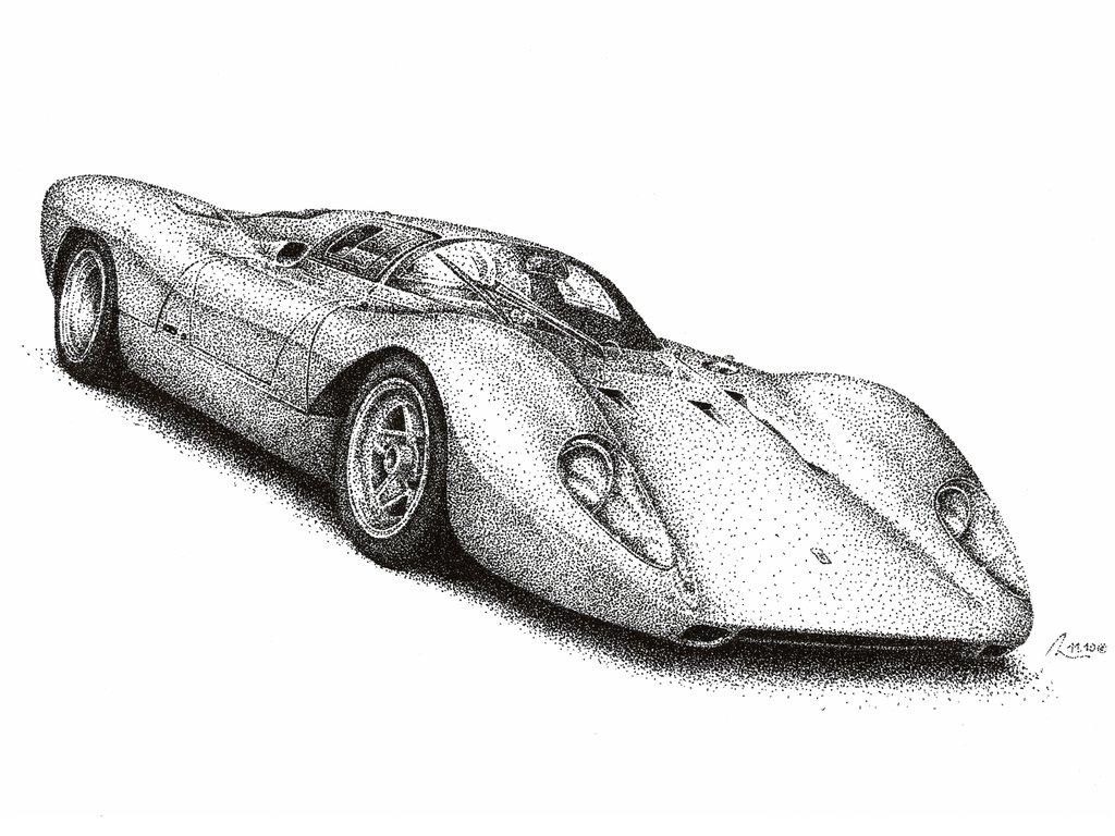 ne finira pas le premier tour de la couse mancelle, ayant percuté un réservoir de Porsche 917 en flamme. Personne ne s'accorde à dire depuis