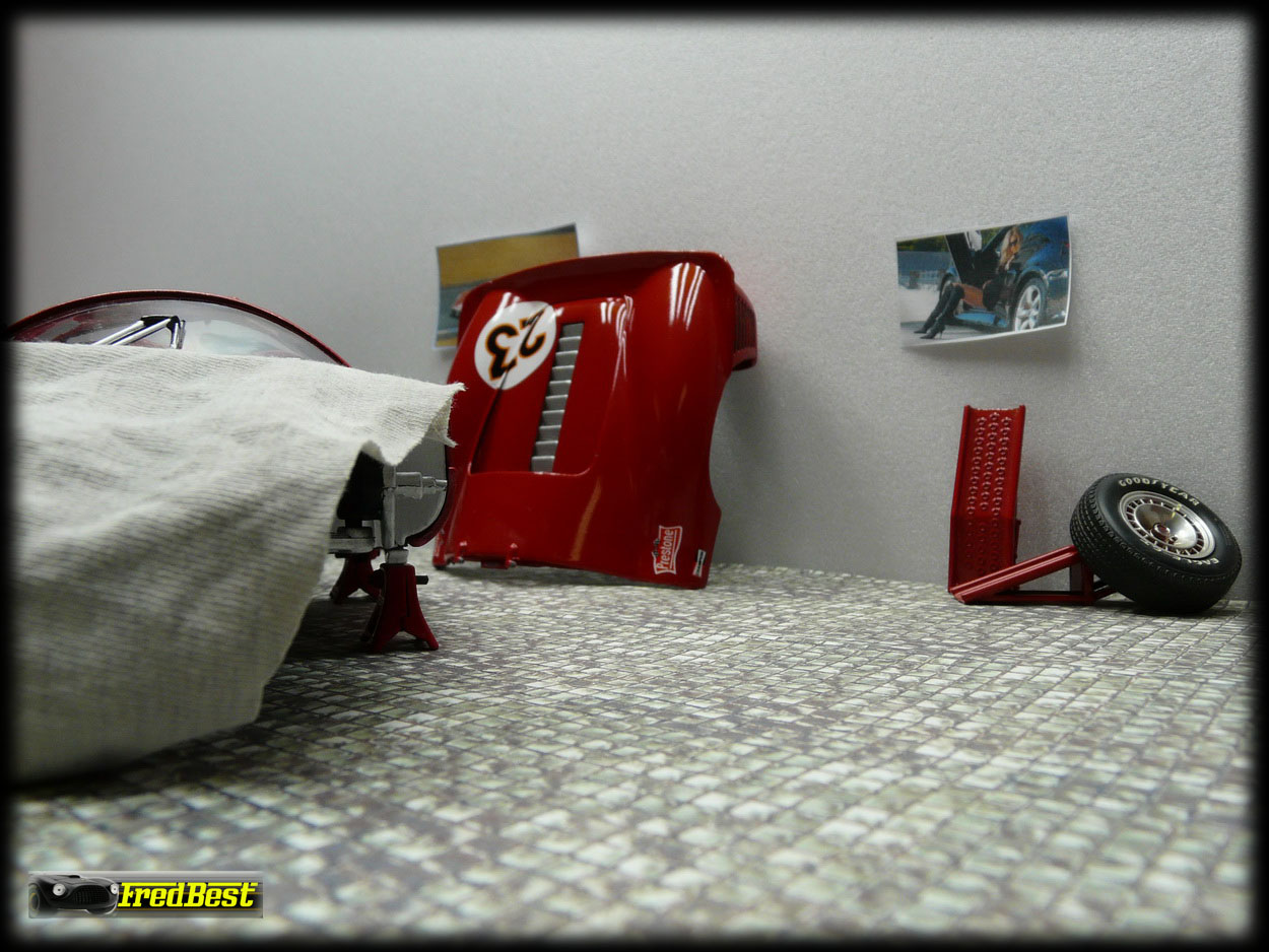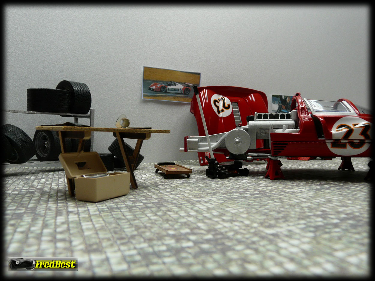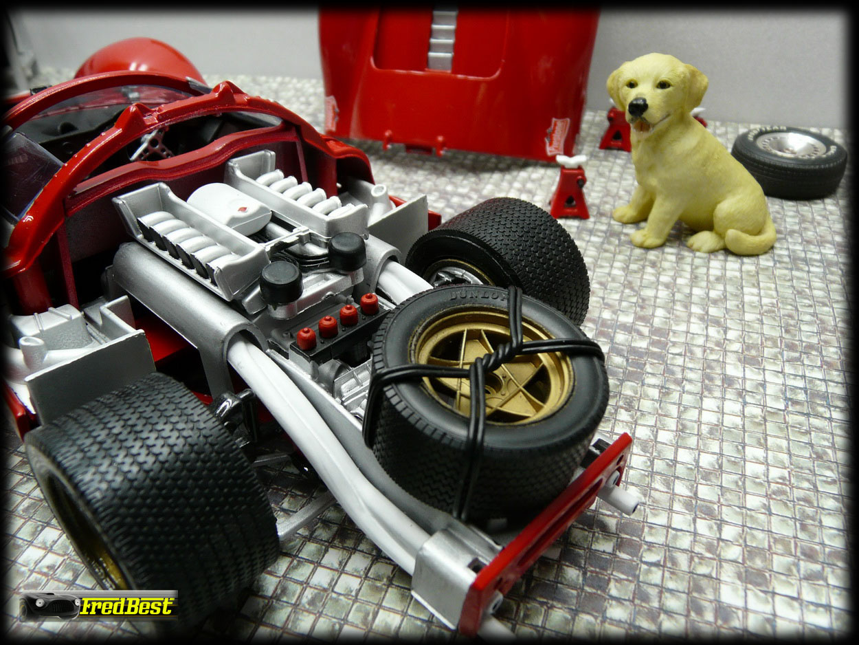 Voici donc la fameuse 330 P3/4, châssis 0846, victorieuse aux 24H de Daytona 67. Cette reproduction au 1/18 de chez Jouef a necessitée une bonne restauration avant de retrouver sa livrée 67.