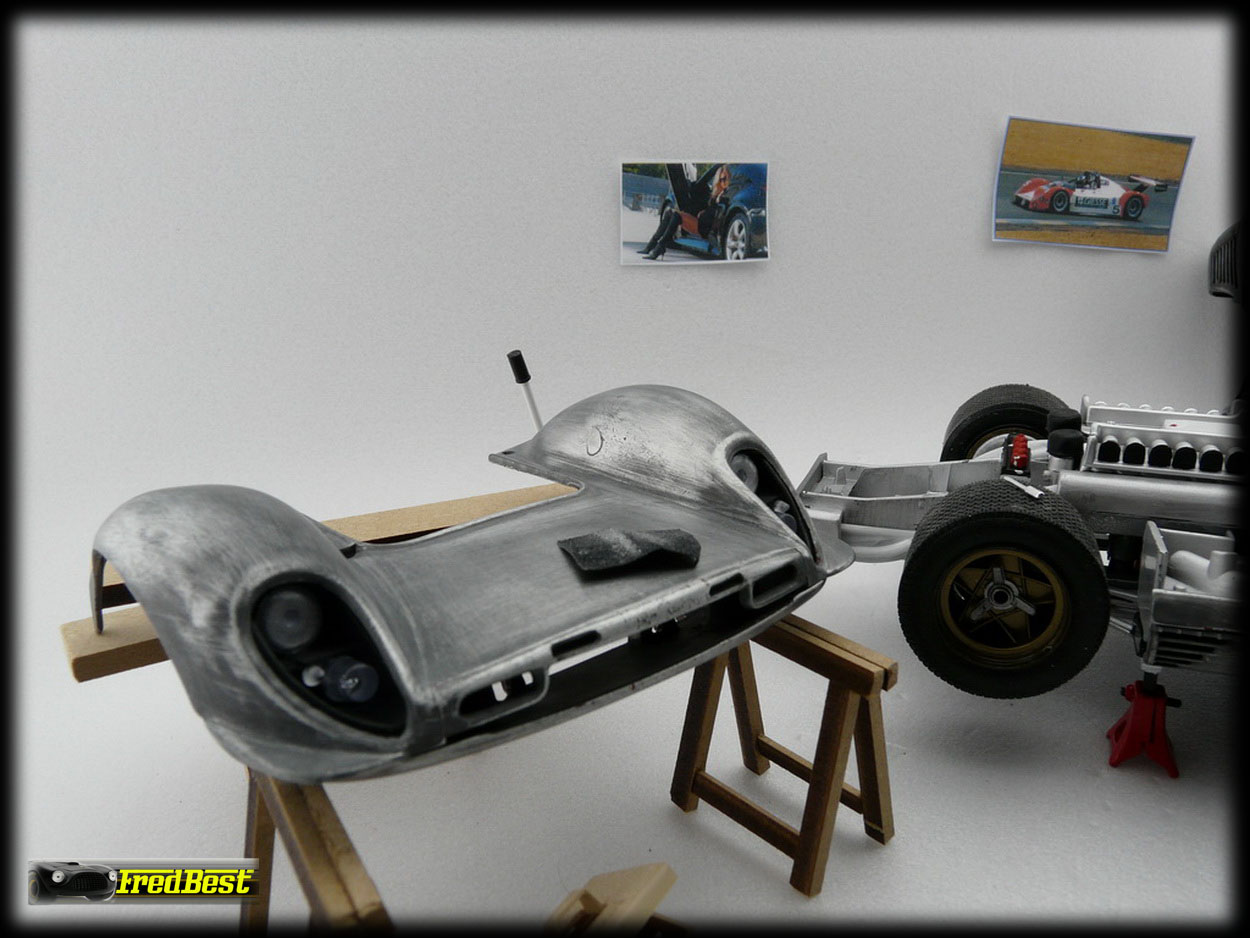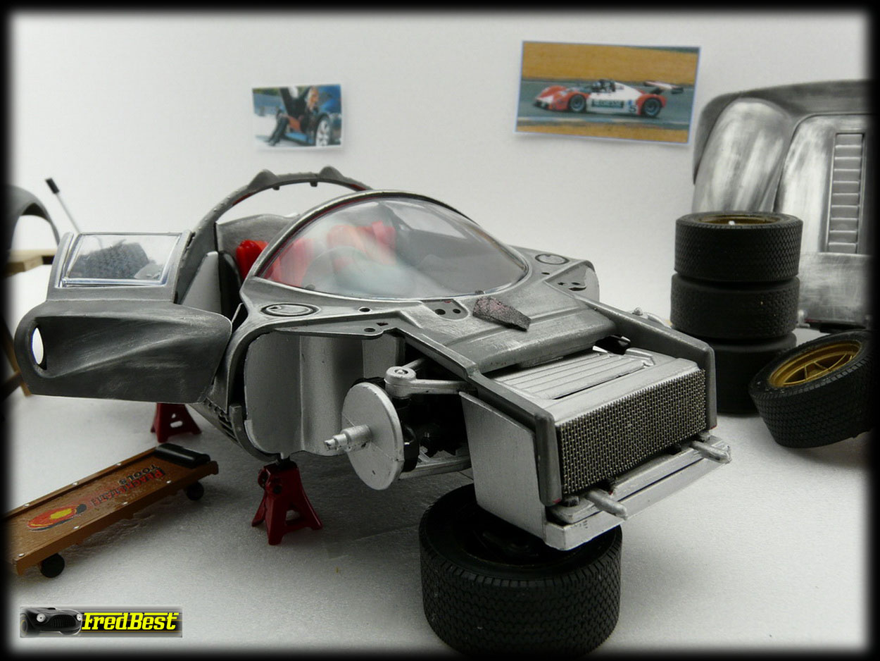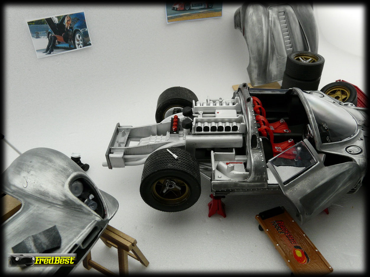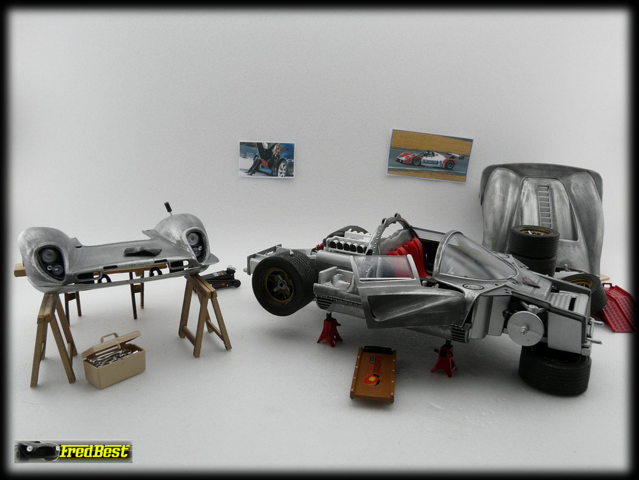 Voici donc la fameuse 330 P3/4, châssis 0846, victorieuse aux 24H de Daytona 67. Cette reproduction au 1/18 de chez Jouef a necessitée une bonne restauration avant de retrouver sa livrée 67.