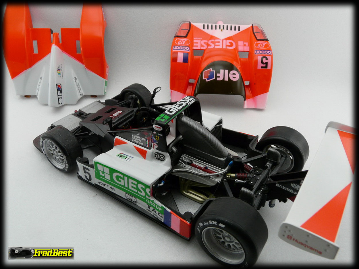 Voici la Ferrari 333 SP (châssis 022) N°5 du team JMB Giesse en version course, avec le capot arriere rallongé, ayant participé au 24H du mans 98 et qui a