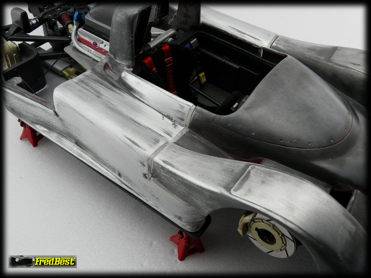 Malheureusement, parce qu'il en faut un, la couche de vernis finale a fait déteindre le rouge sur le blanc du capot, même