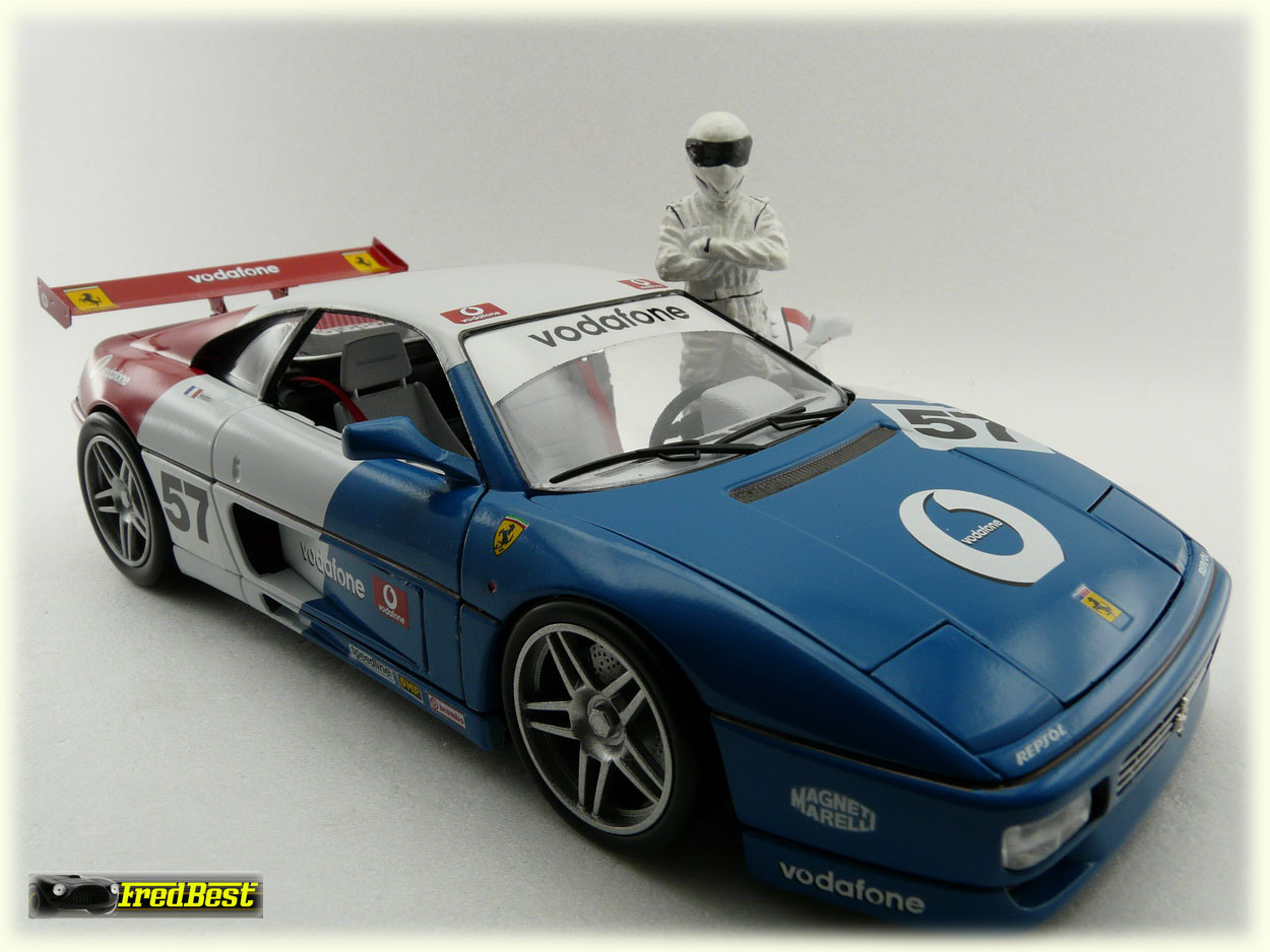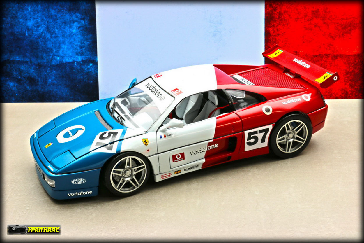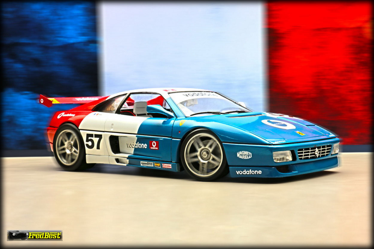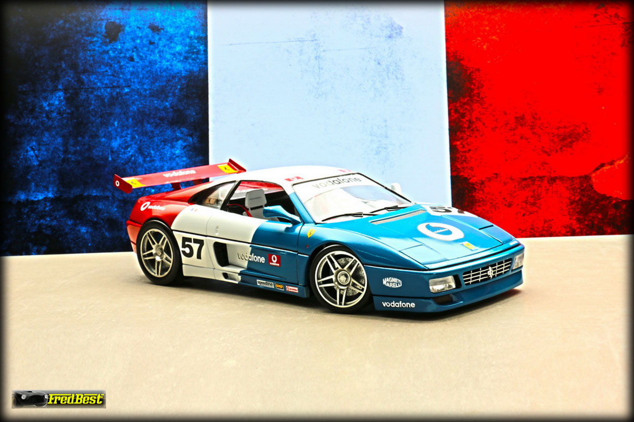 Quatrième 348 de ma collection, une "réalisation-délire" puisque totalement inexistante, encore d'une base 348 burago. Les grandes lignes de cette modif étaient : 348 – Course – Bleu/Blanc/Rouge.