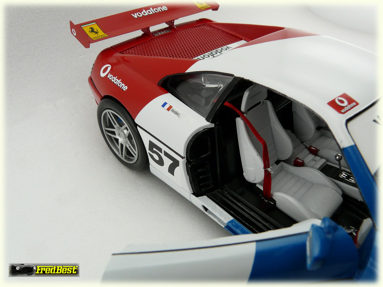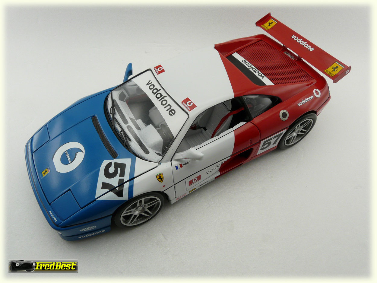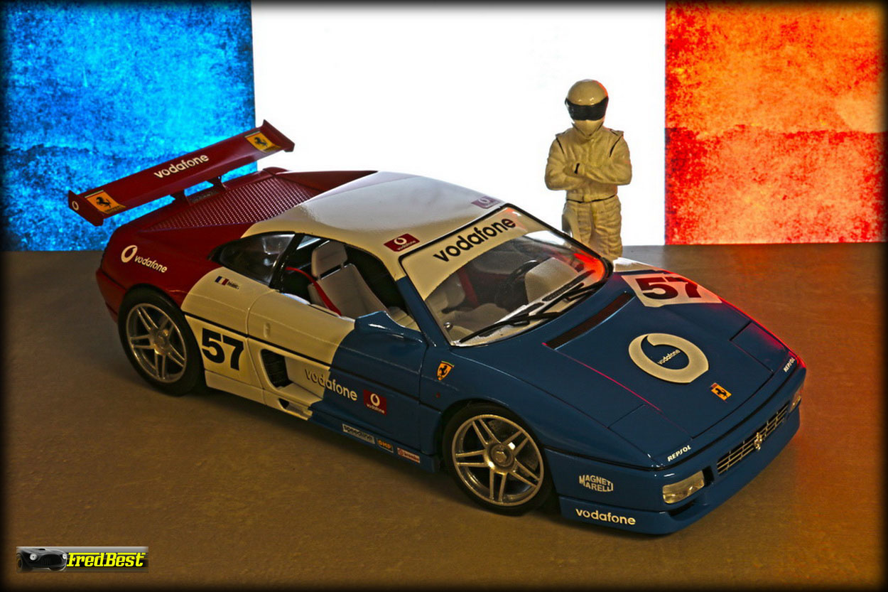 Quatrième 348 de ma collection, une "réalisation-délire" puisque totalement inexistante, encore d'une base 348 burago. Les grandes lignes de cette modif étaient : 348 – Course – Bleu/Blanc/Rouge.