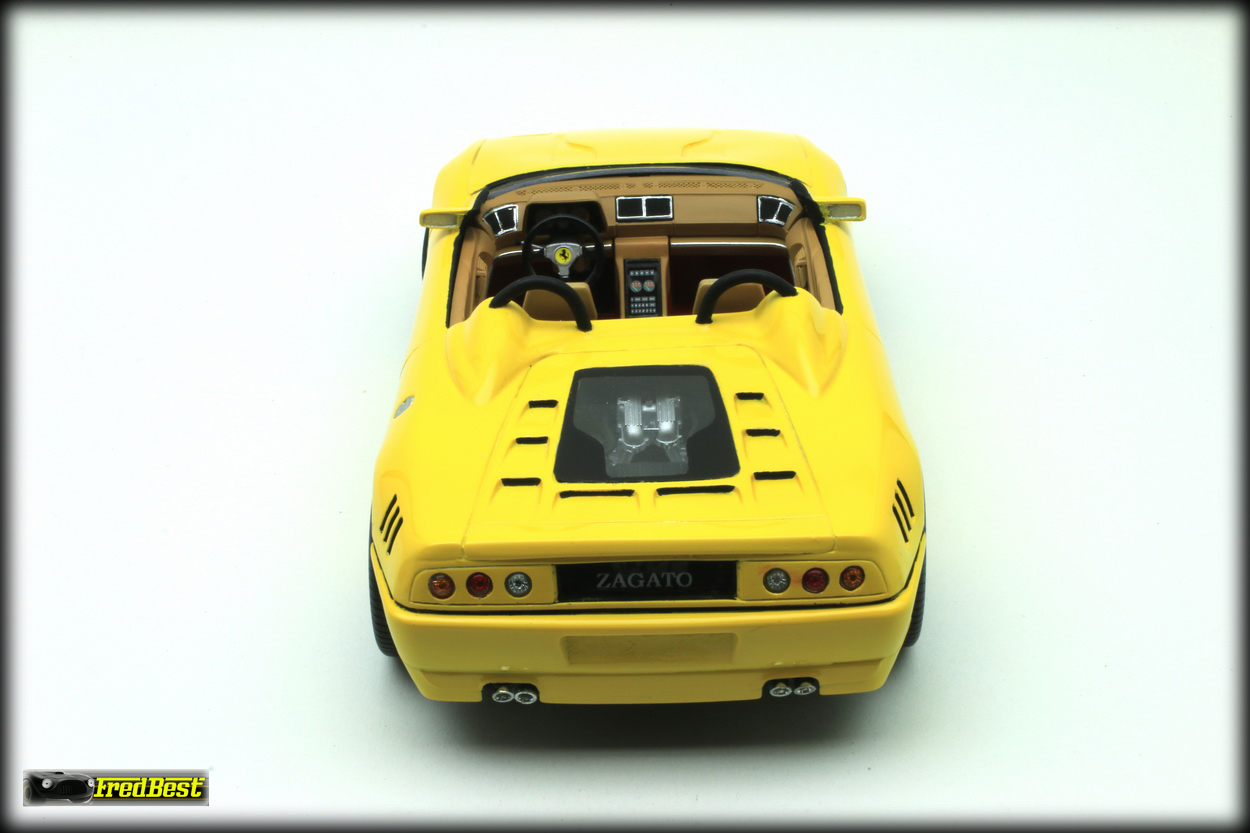 Par hasard, je me suis dégoté pour à peine 10 euros sur la toile, une coque résine de 348 Zagato Spider, aucun accessoire n'était fourni avec, juste une coque seule ! Je connais le modèle 1/1 en berlinette,