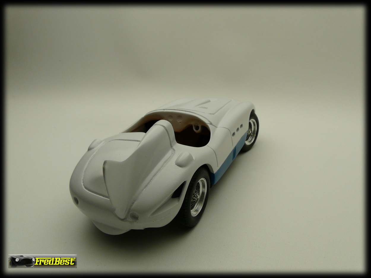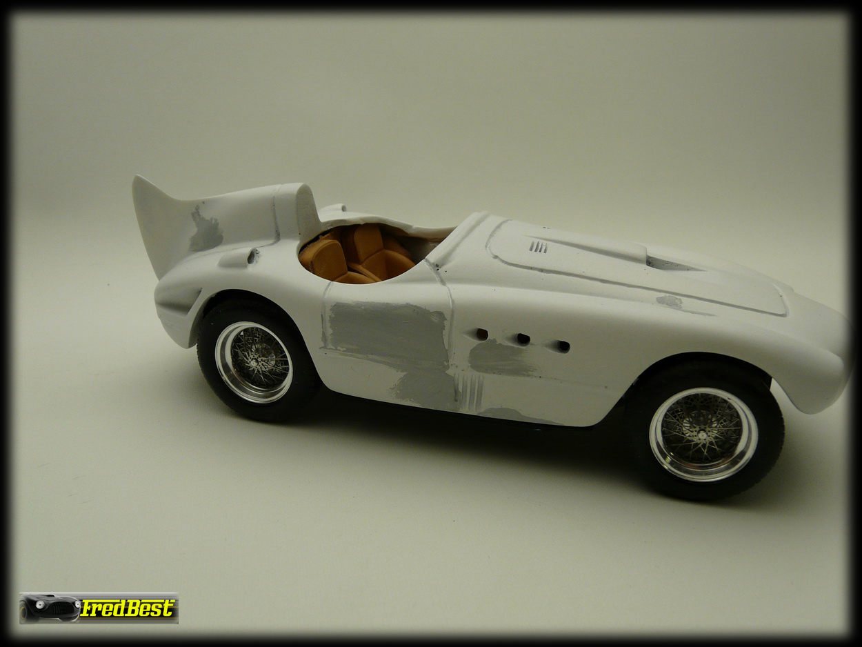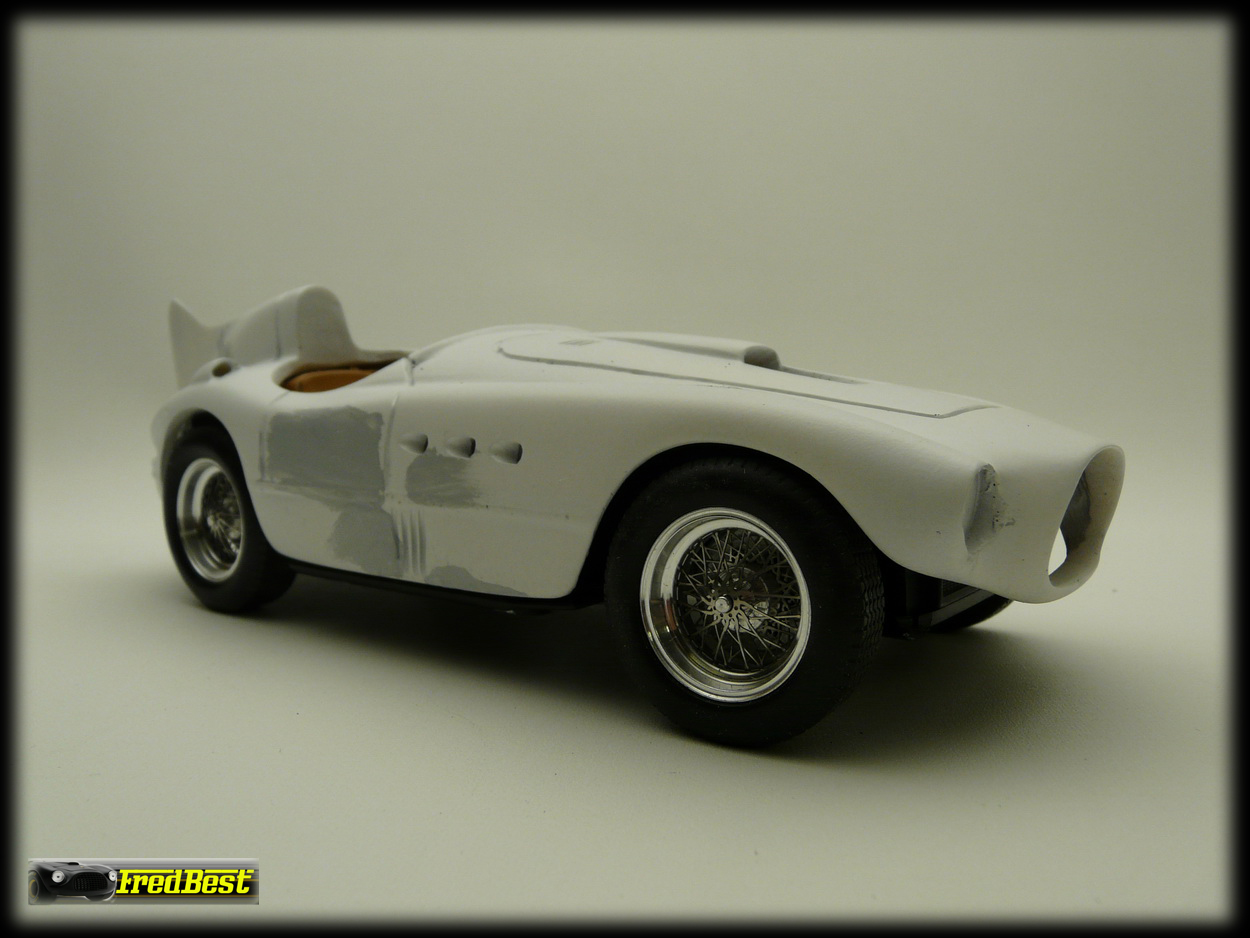 Après deux jours de ponçage et de masticage, la carrosserie de cette petite 375 MM commence à ressembler à quelque chose !