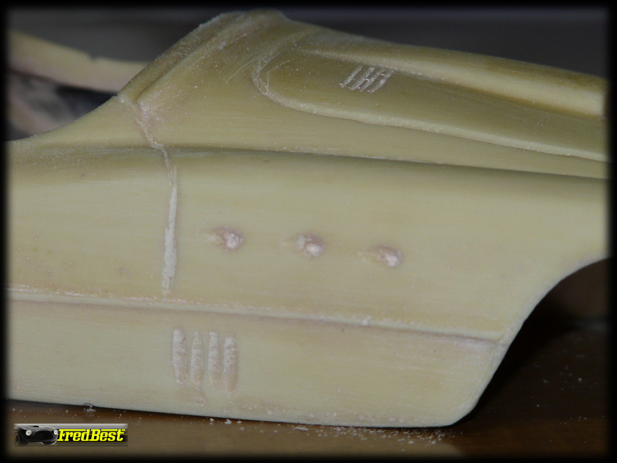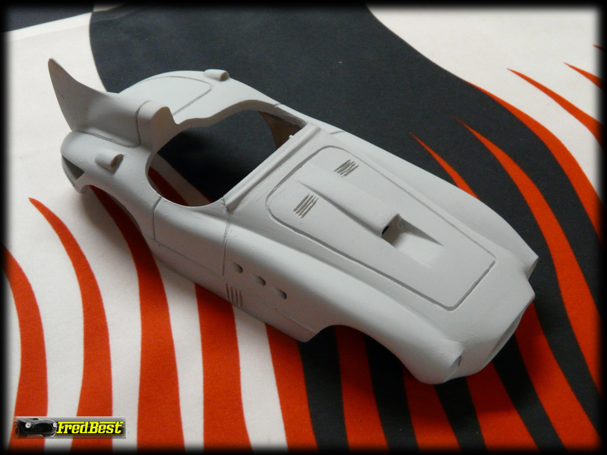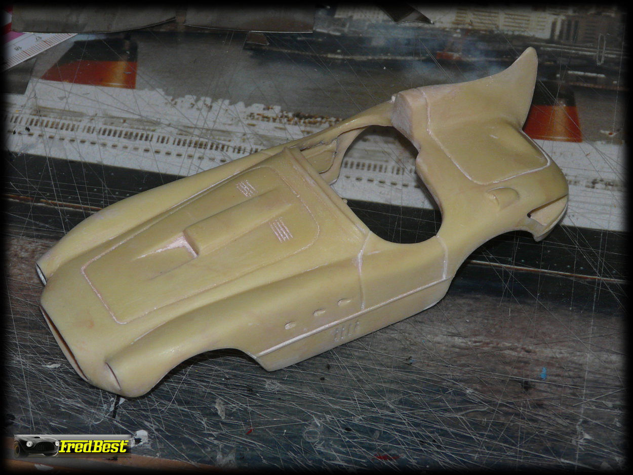Après deux jours de ponçage et de masticage, la carrosserie de cette petite 375 MM commence à ressembler à quelque chose !