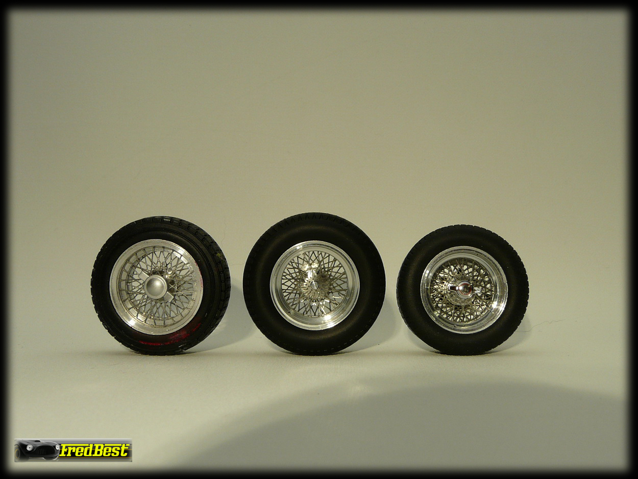 kit roues fils BBR avec des pneus récupérés sur une 250 GTO Hotweels car avec ceux fournis, le diamètre des roues était toujours