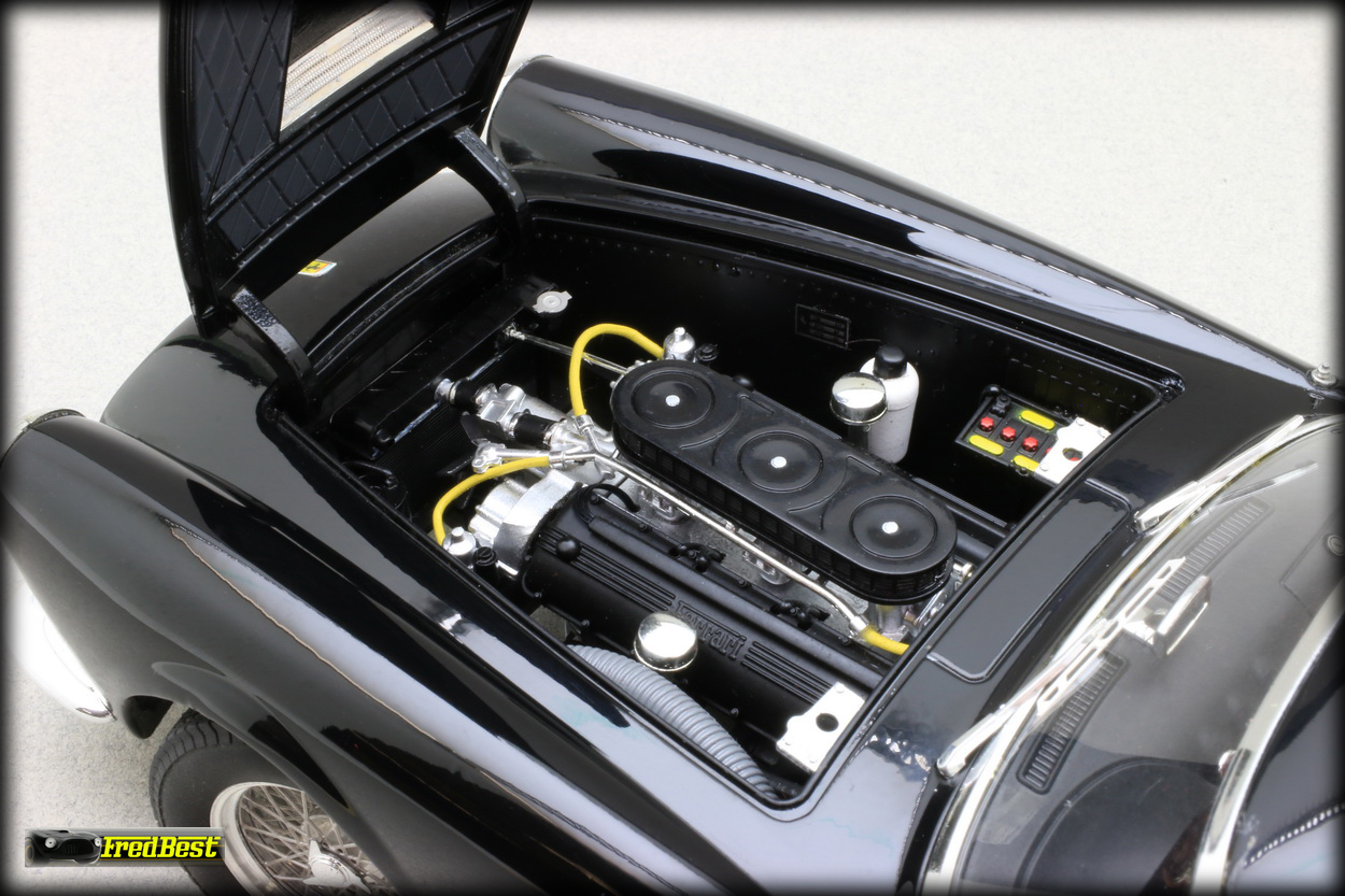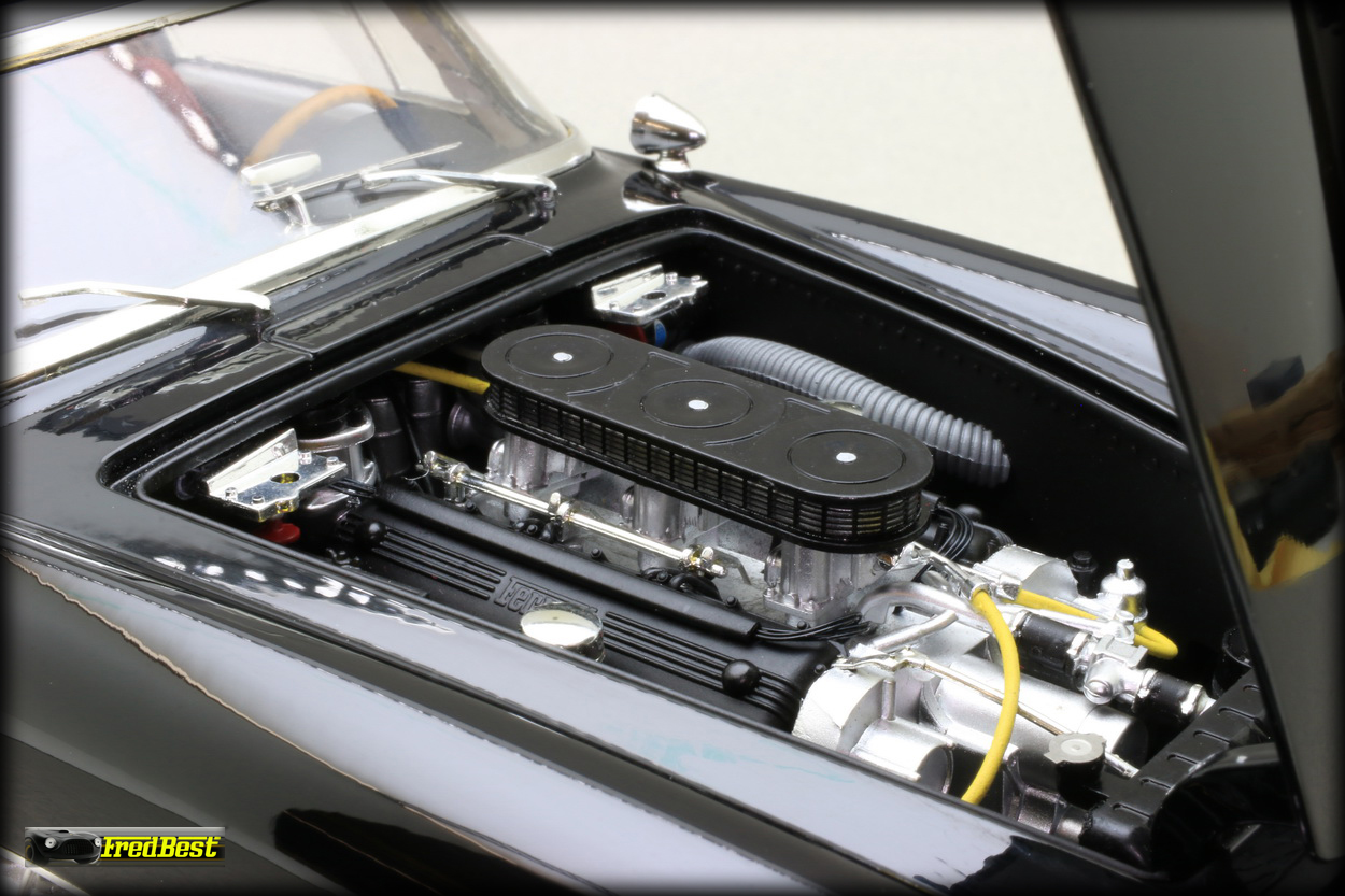 très bien finie avec un tableau de bord bien détaillé, un coffre complet et un compartiment moteur très réaliste. Si je devais émettre une critique, ce serai au