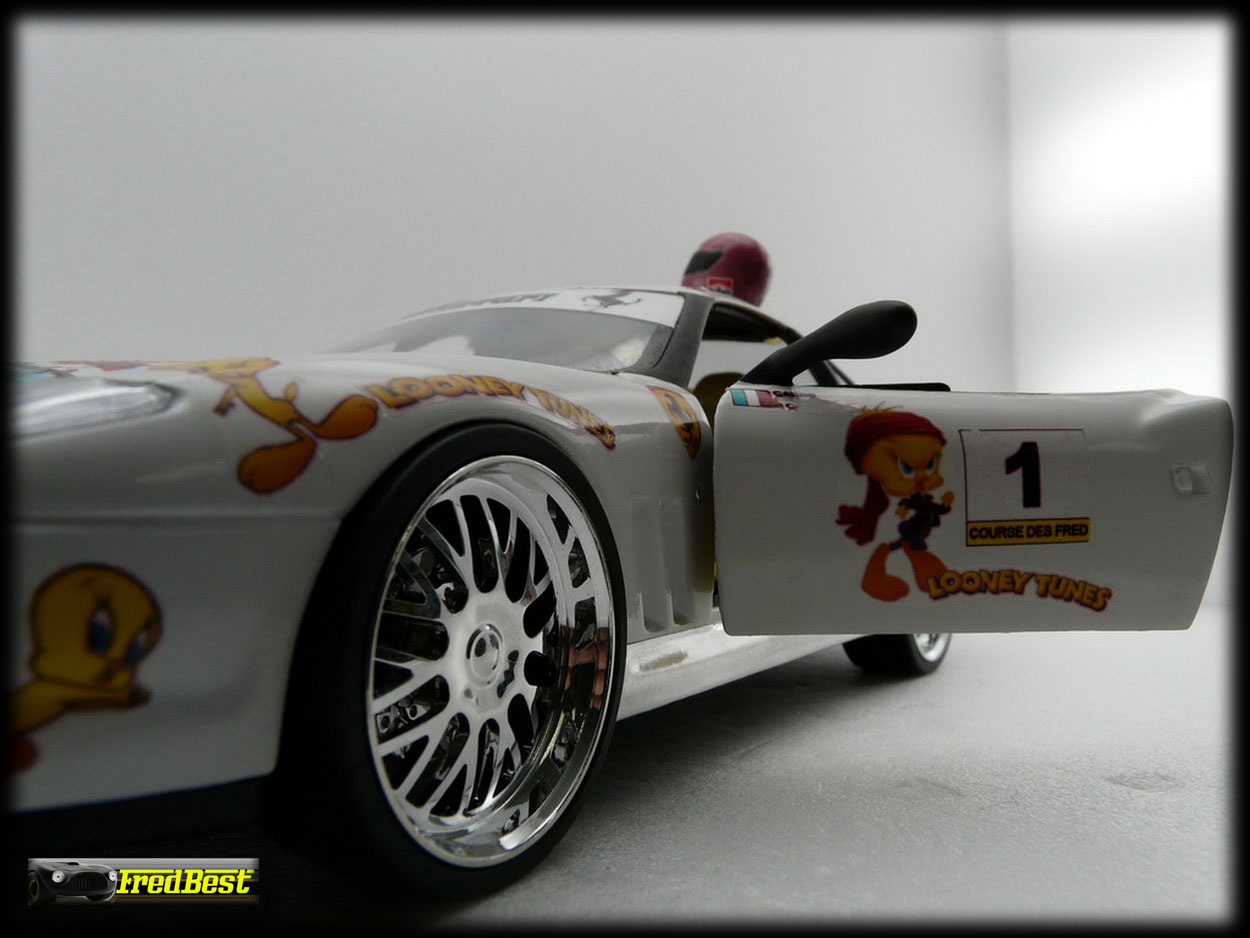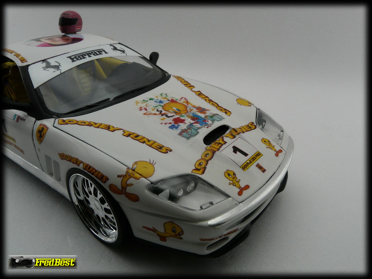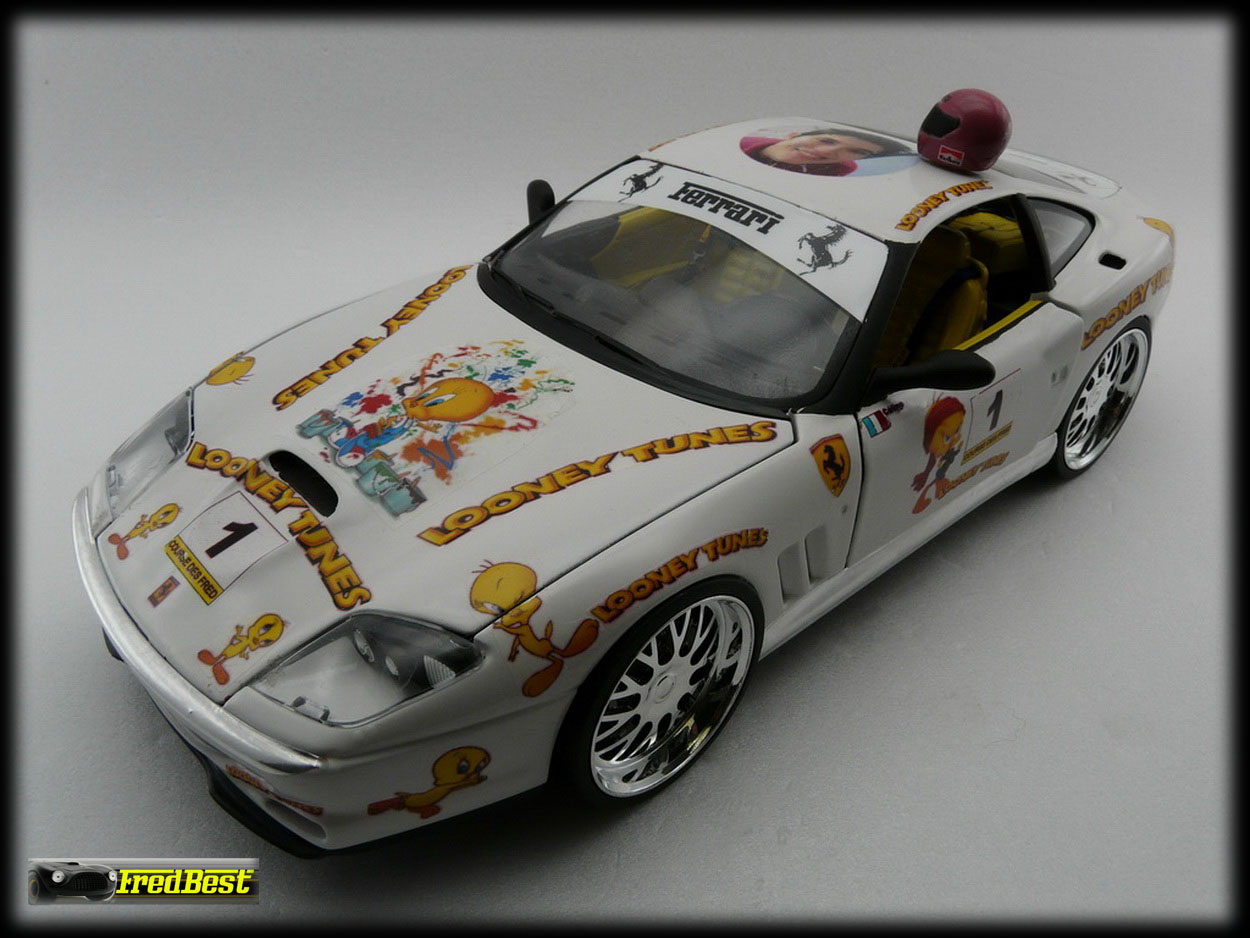 Voici une petite réalisation personnelle sur base 550 Burago que j'avais en double. Pour que mon épouse ne soit pas perdue dans ma collection de voitures, j'ai voulu lui en créer une sur mesure.