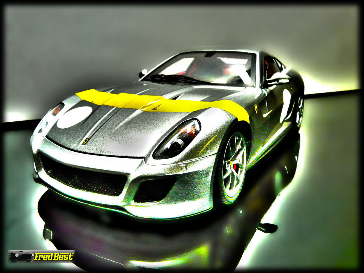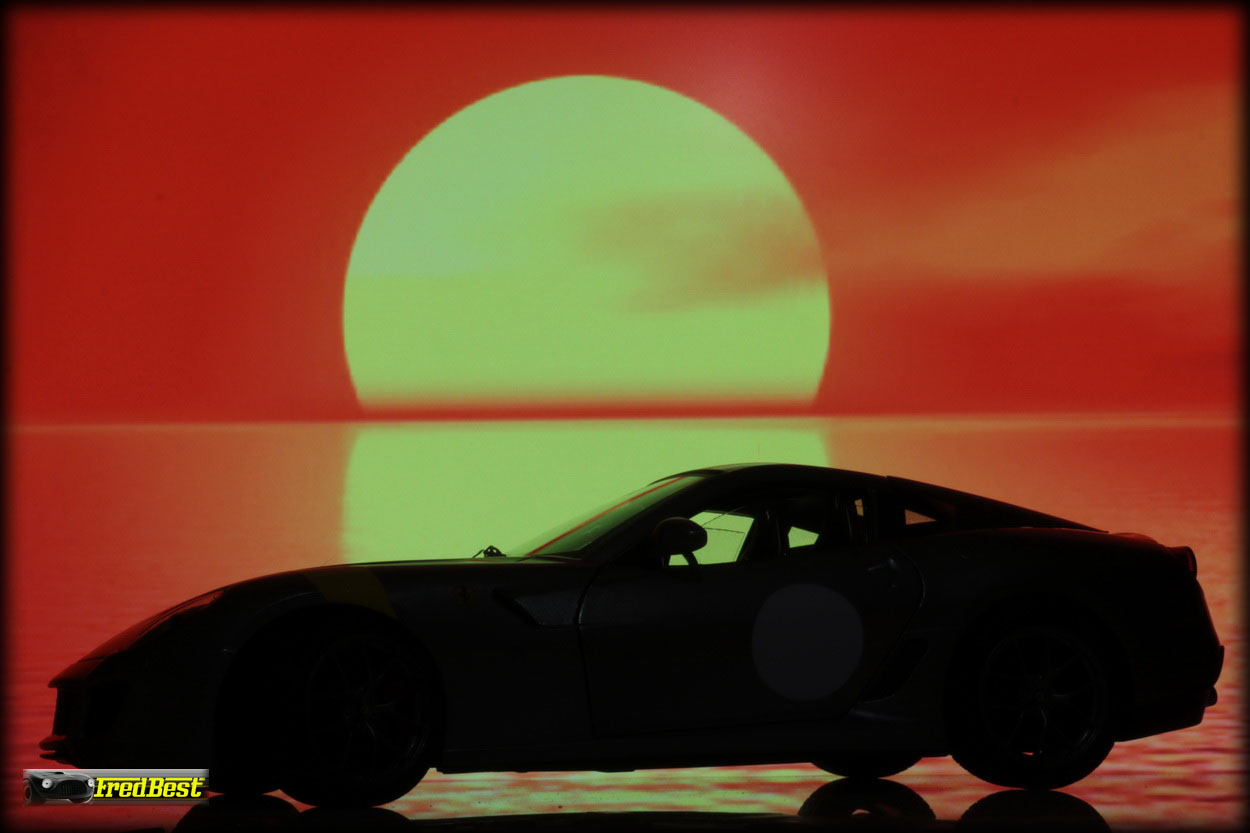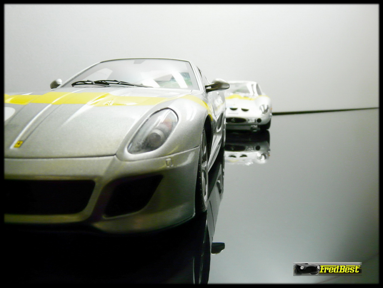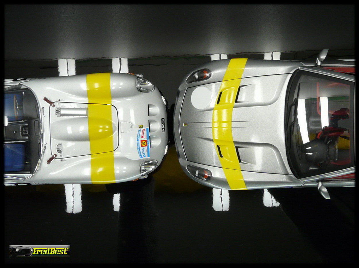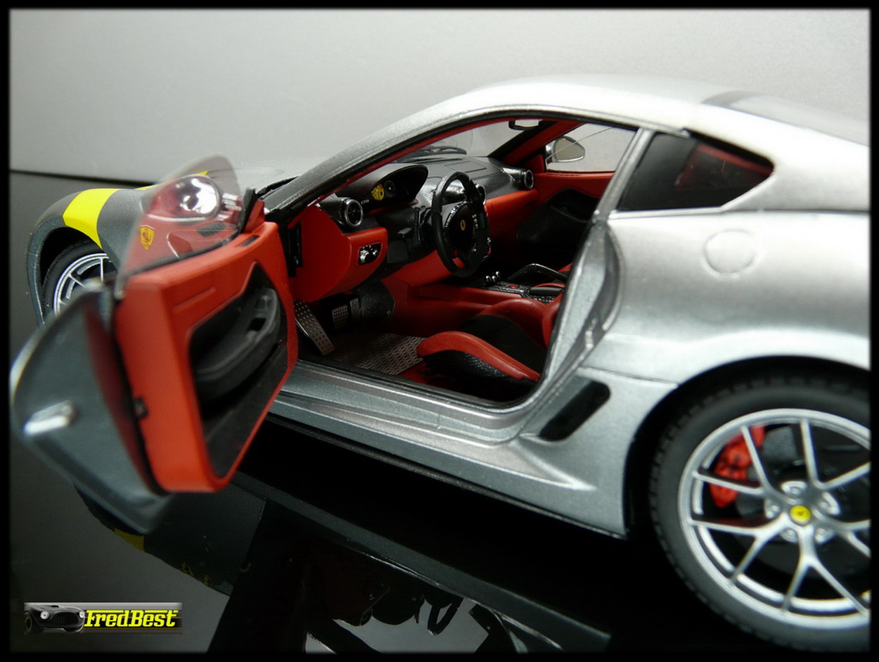 La miniature présentée ici est la version « Livrée Historique » disponible au catalogue d’options de la 599 GTO, reprenant les couleurs de la