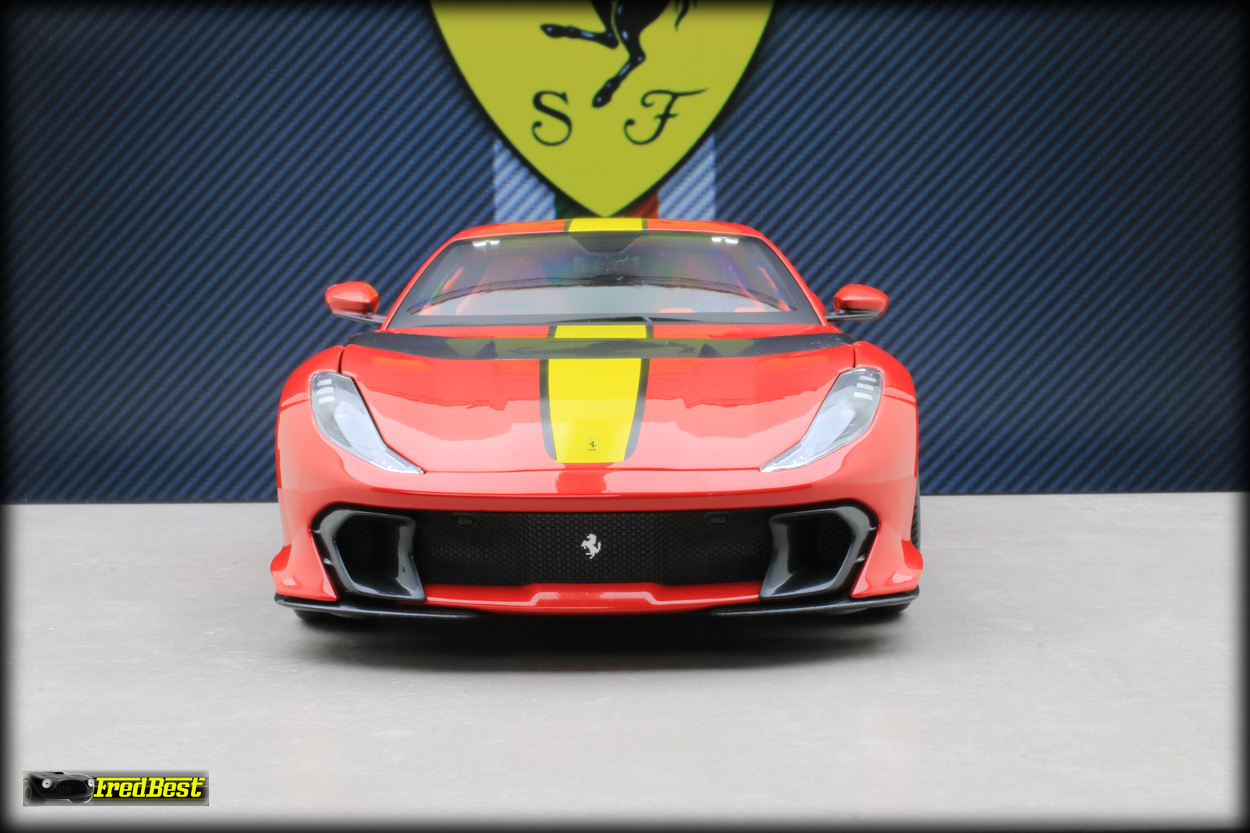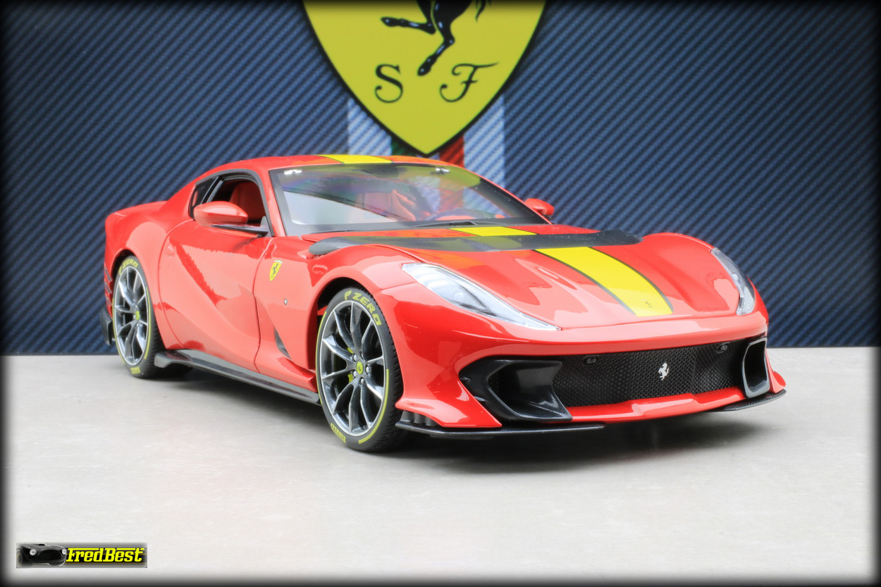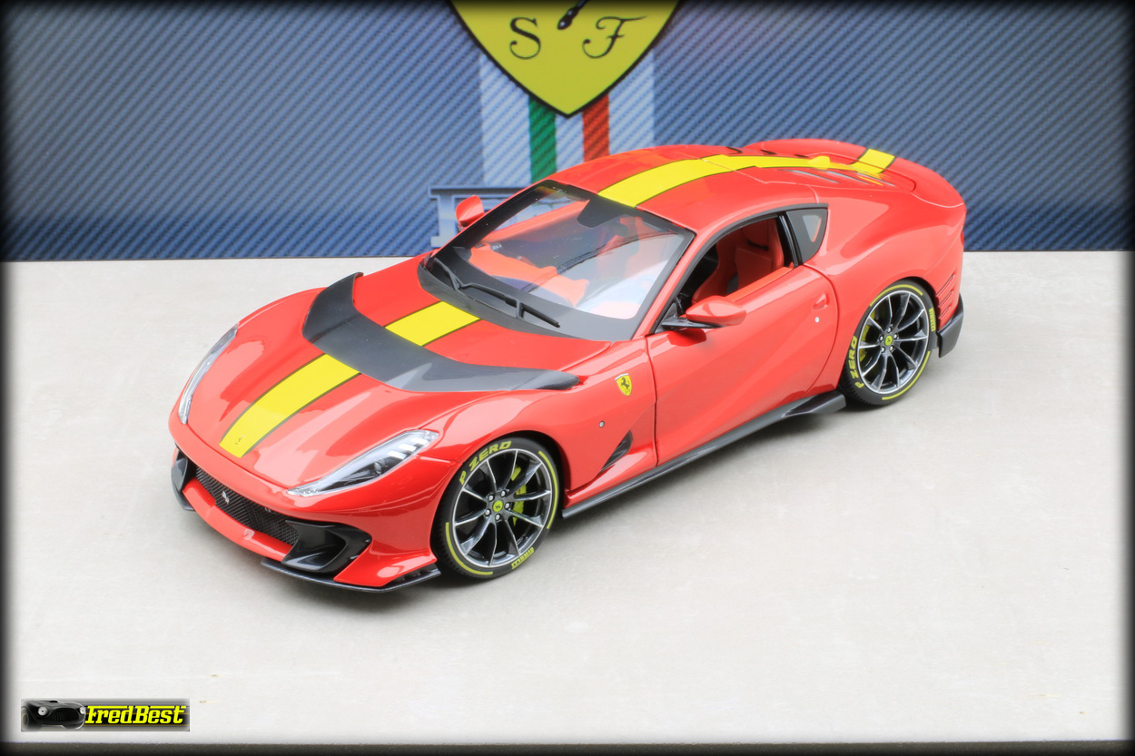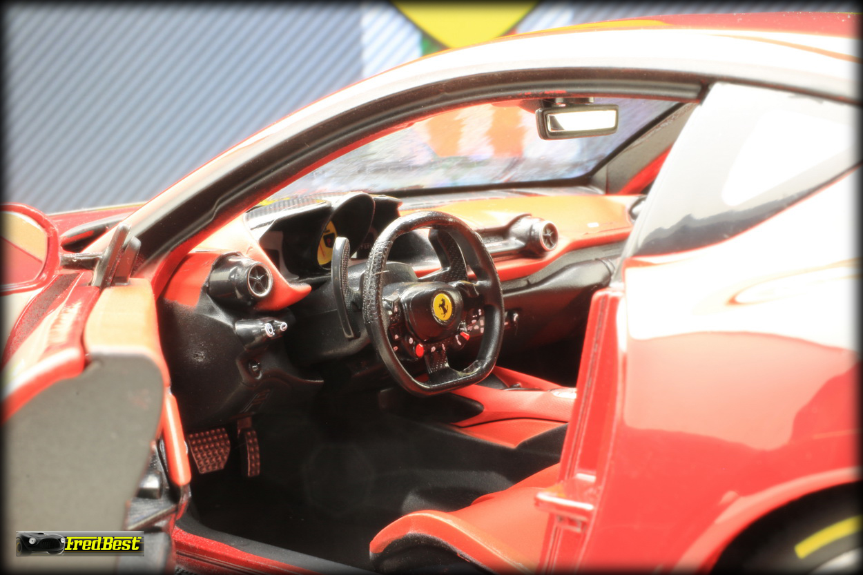 Bburago sur les modèles de cette gamme. Disponible en rouge et en grise, j'hésitais encore sur la couleur quand un ami a tranché pour moi, pouvant me commander la version rouge pour un peu moins cher, merci Jacky.