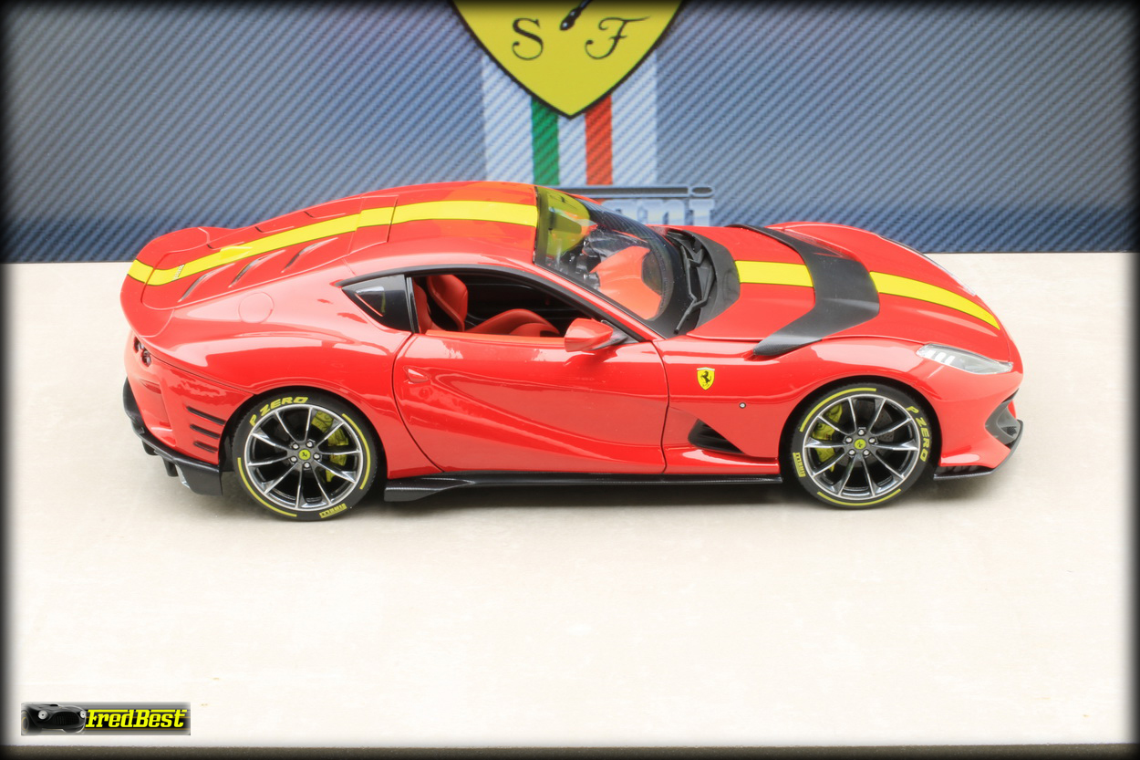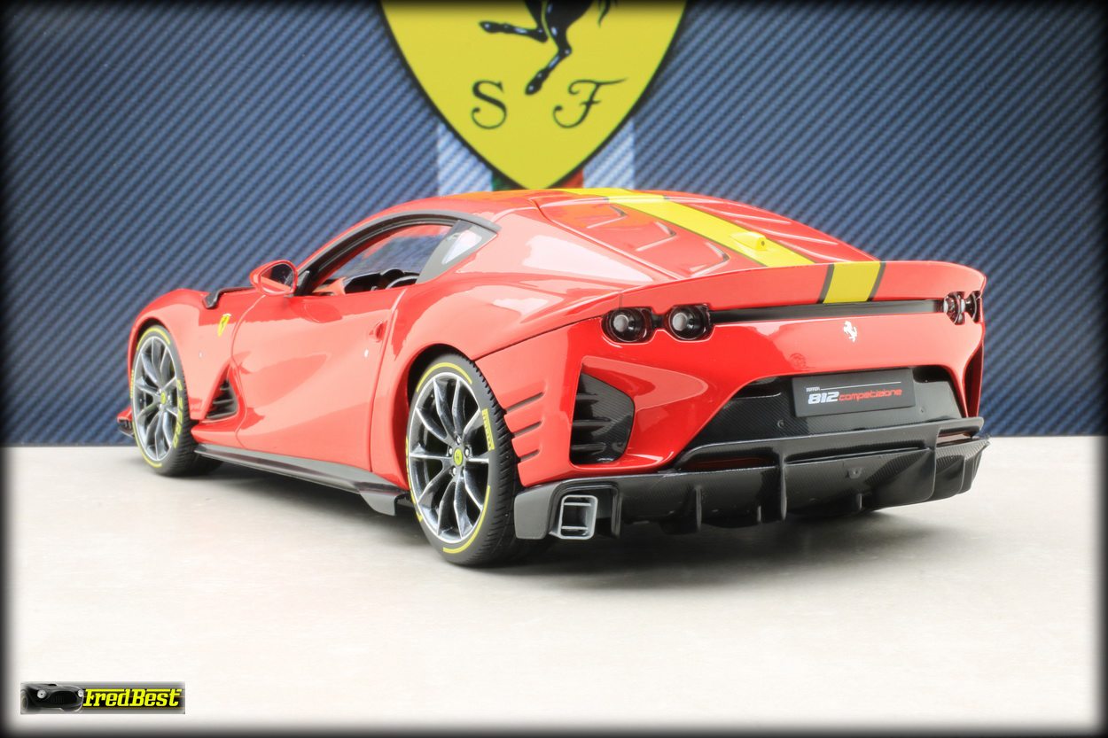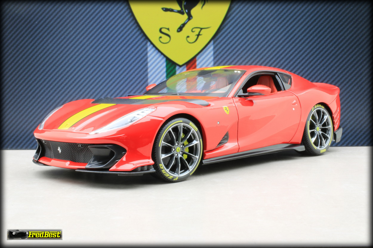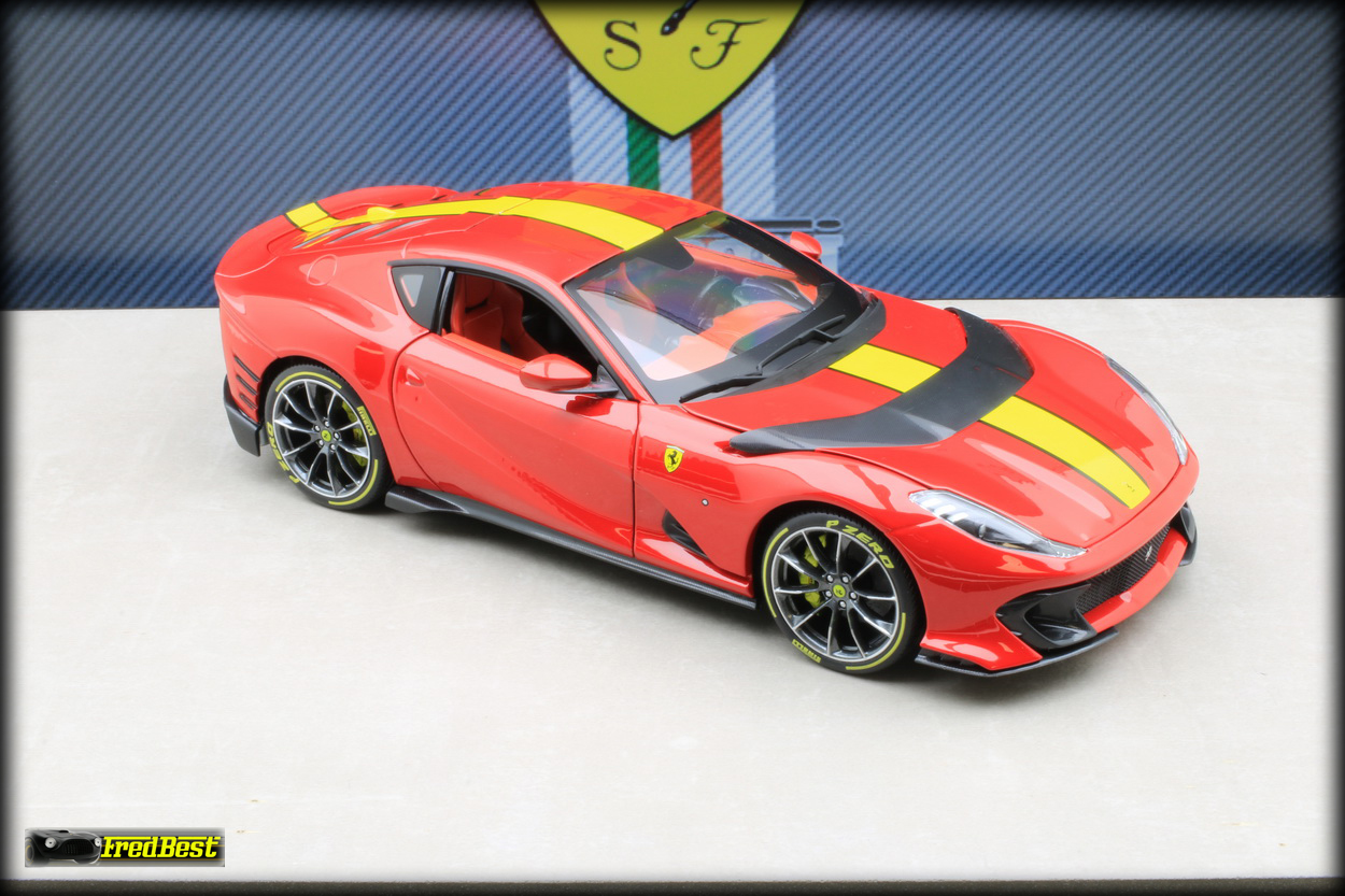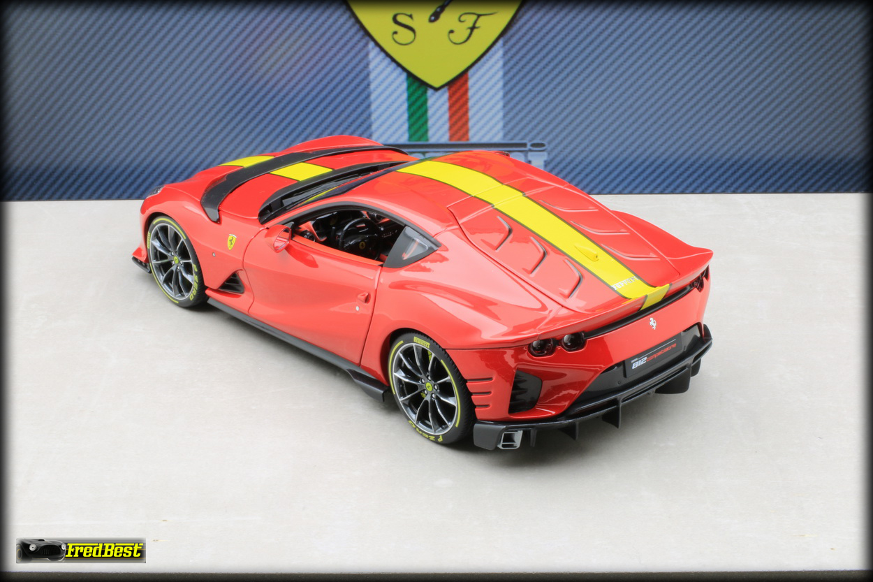 Bburago sur les modèles de cette gamme. Disponible en rouge et en grise, j'hésitais encore sur la couleur quand un ami a tranché pour moi, pouvant me commander la version rouge pour un peu moins cher, merci Jacky.