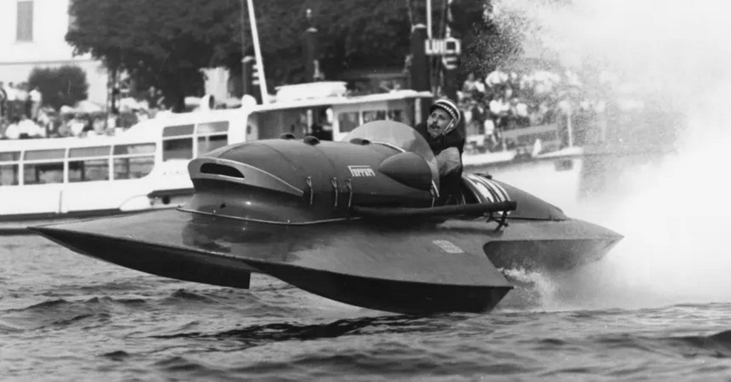 moteur 4,5 litres de la Ferrari 375F1 lors de sa victoire au grand prix de Silverstone en 51, Castoldi n’a plus qu’une idée en tête, greffer ce fantastique moteur dans son bateau. Pour ce faire,
