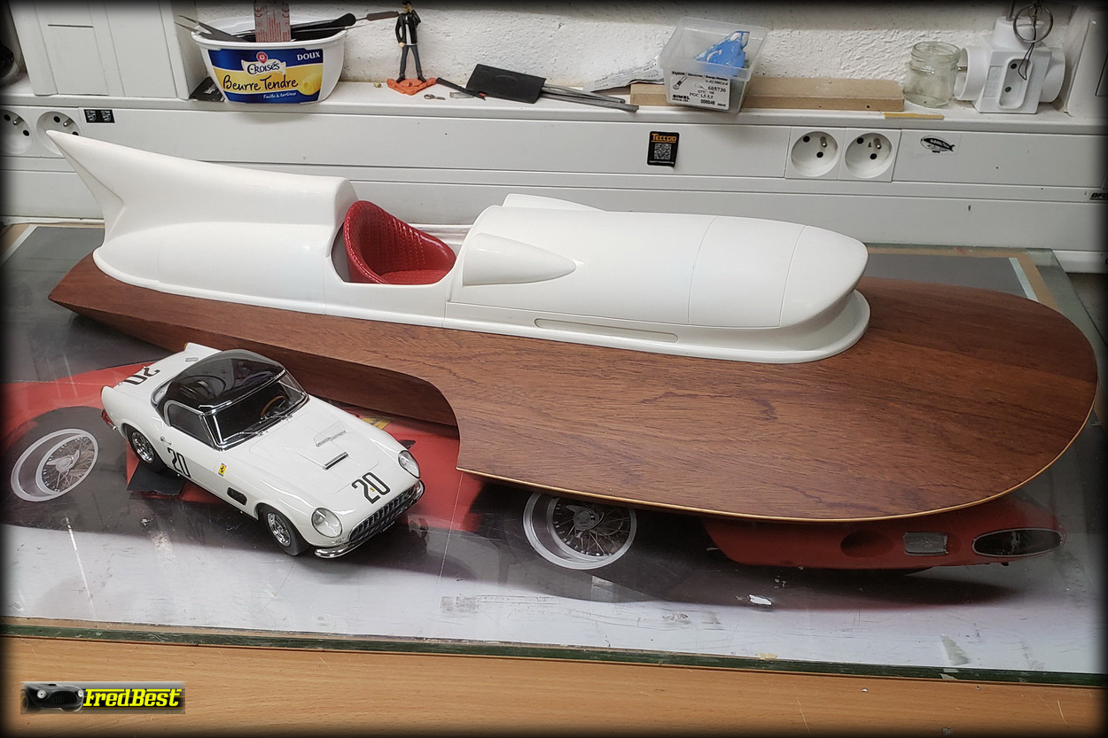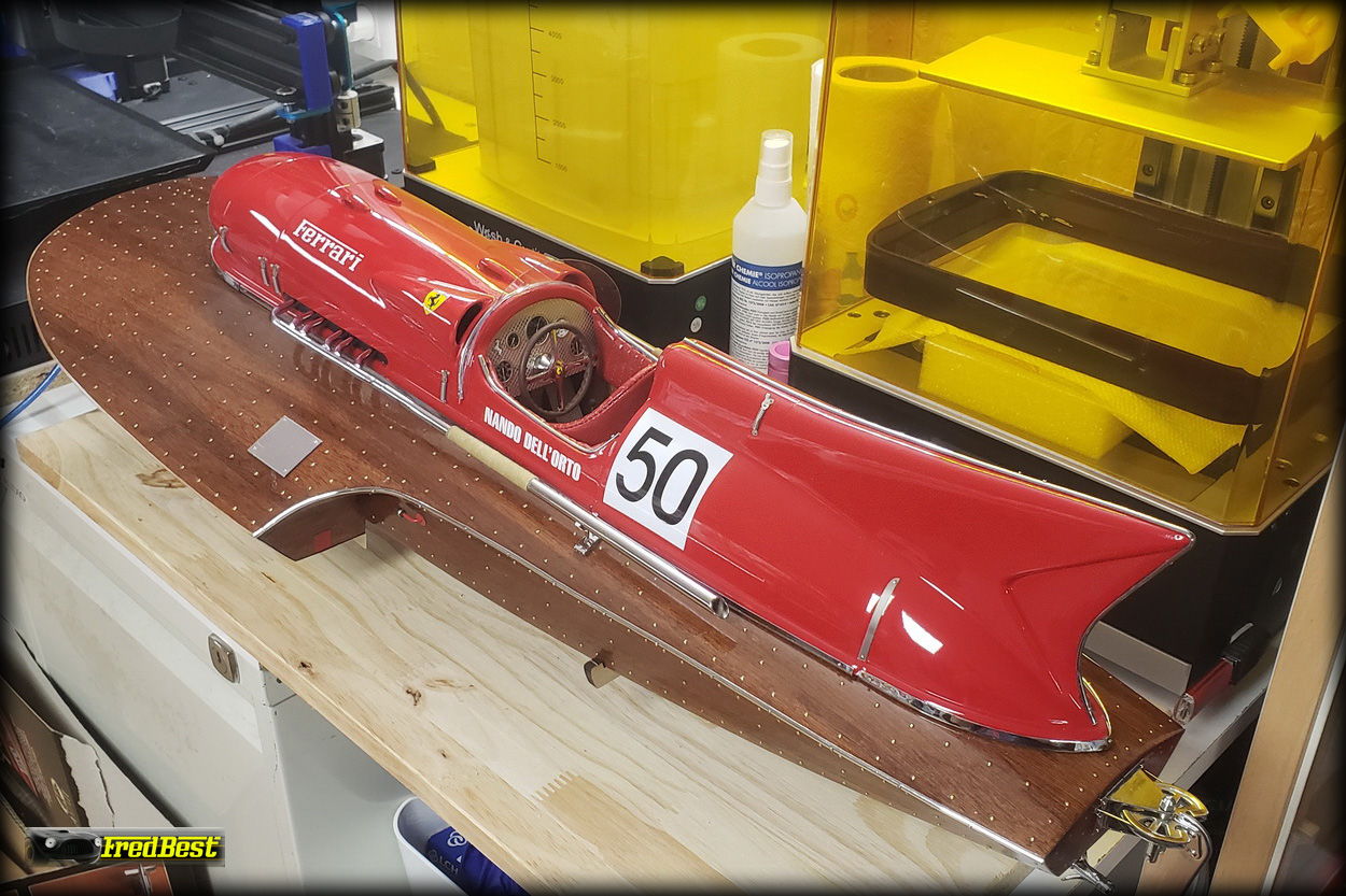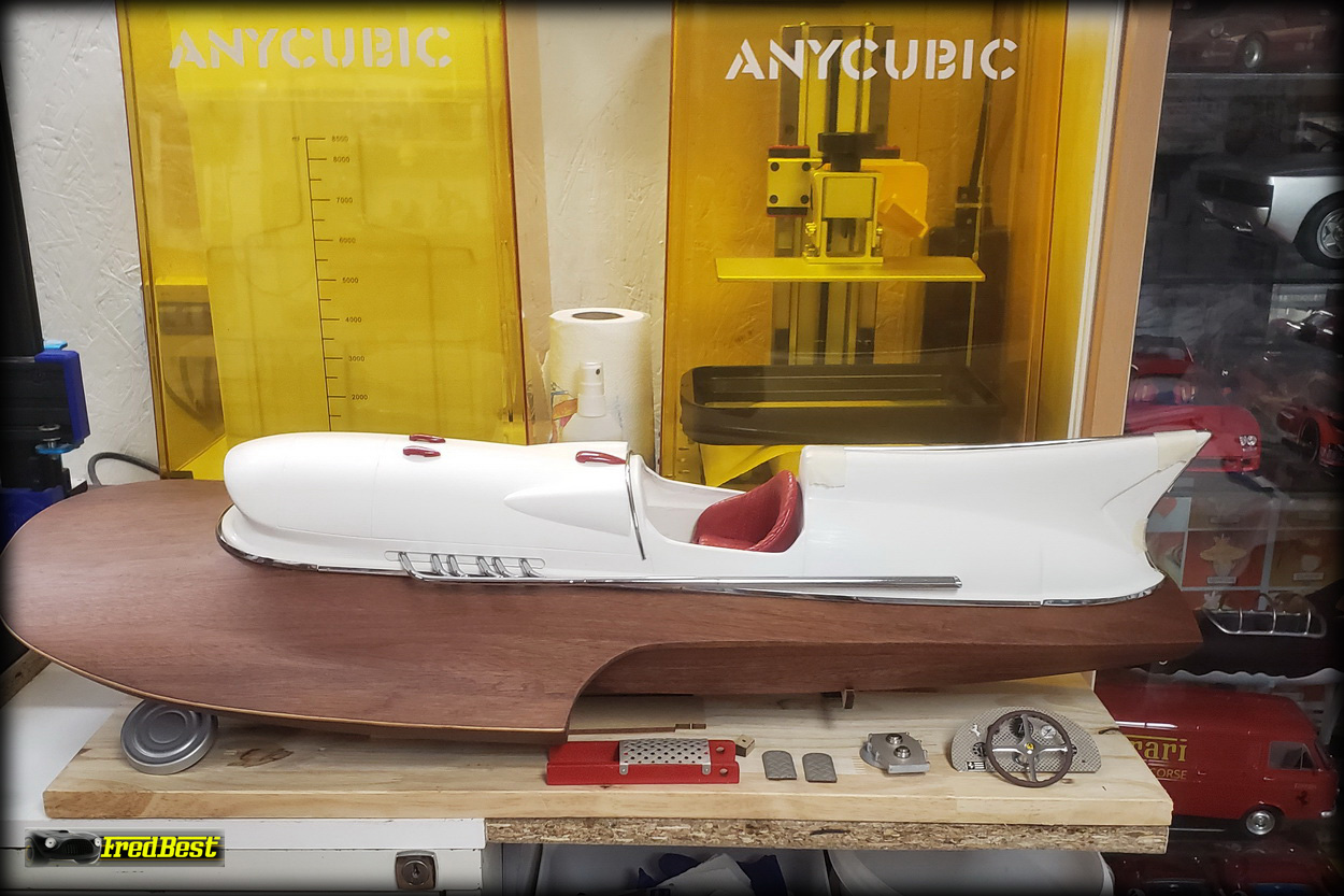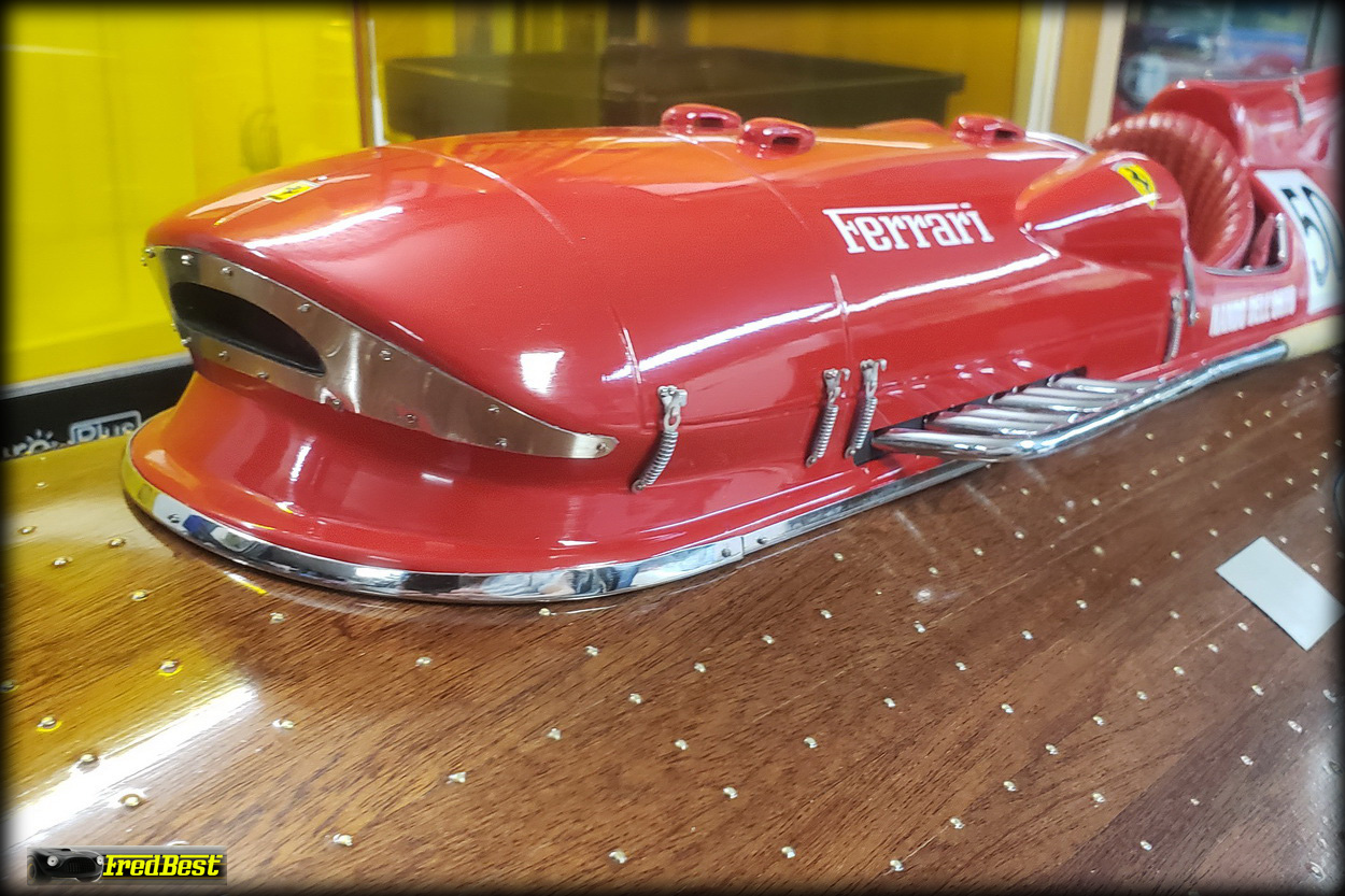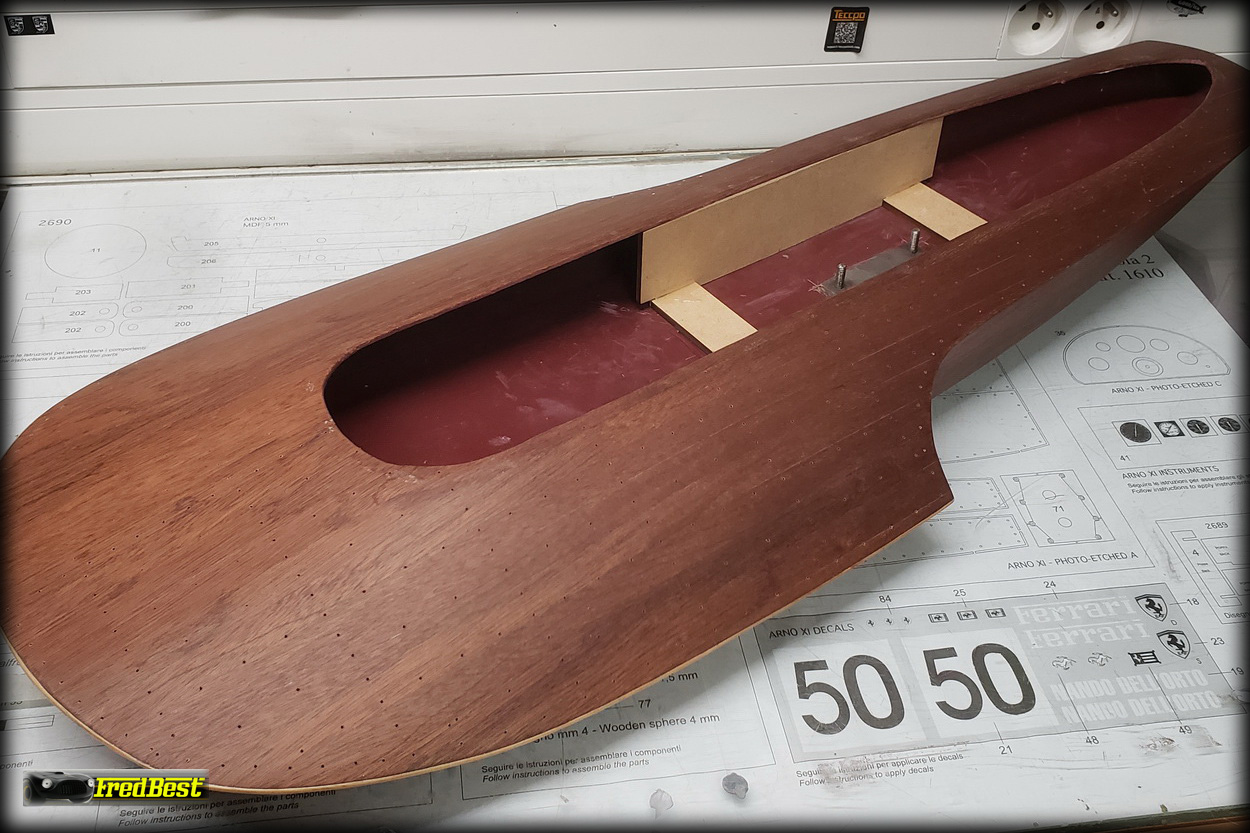 Ultime étape de la construction de cet Arno XI à l'échelle 1/8ème, la délicate pose du pare-brise, un croissant de lune devant épouser la courbure de la carrosserie en ne laissant