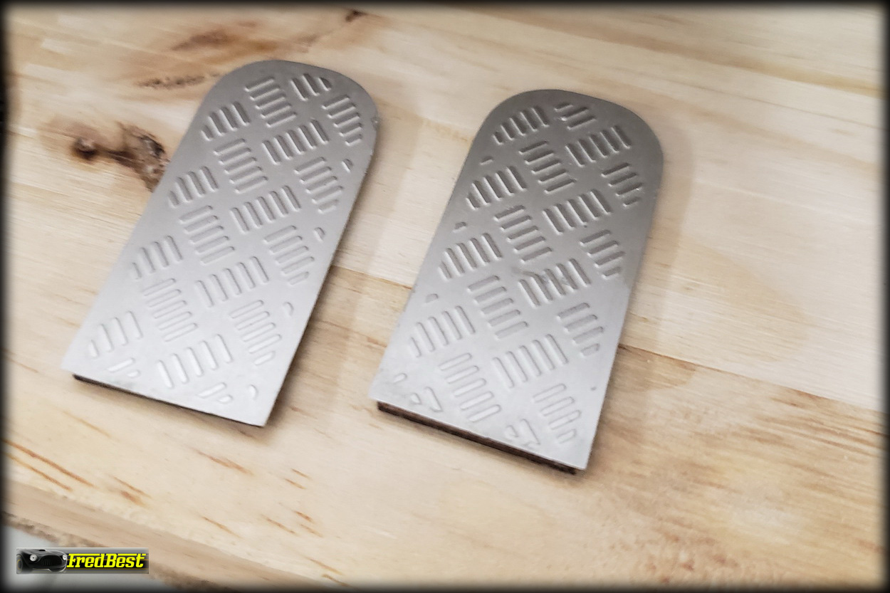 sont pas tous très bien centrés. J'ai donc recréés deux plaques, taillées dans de l'aluminum de 0,5mm d'épaisseur.