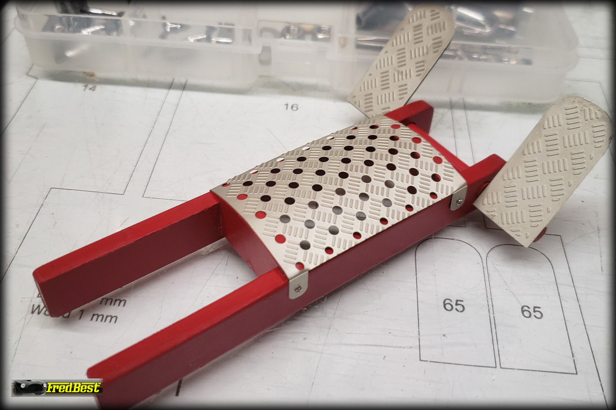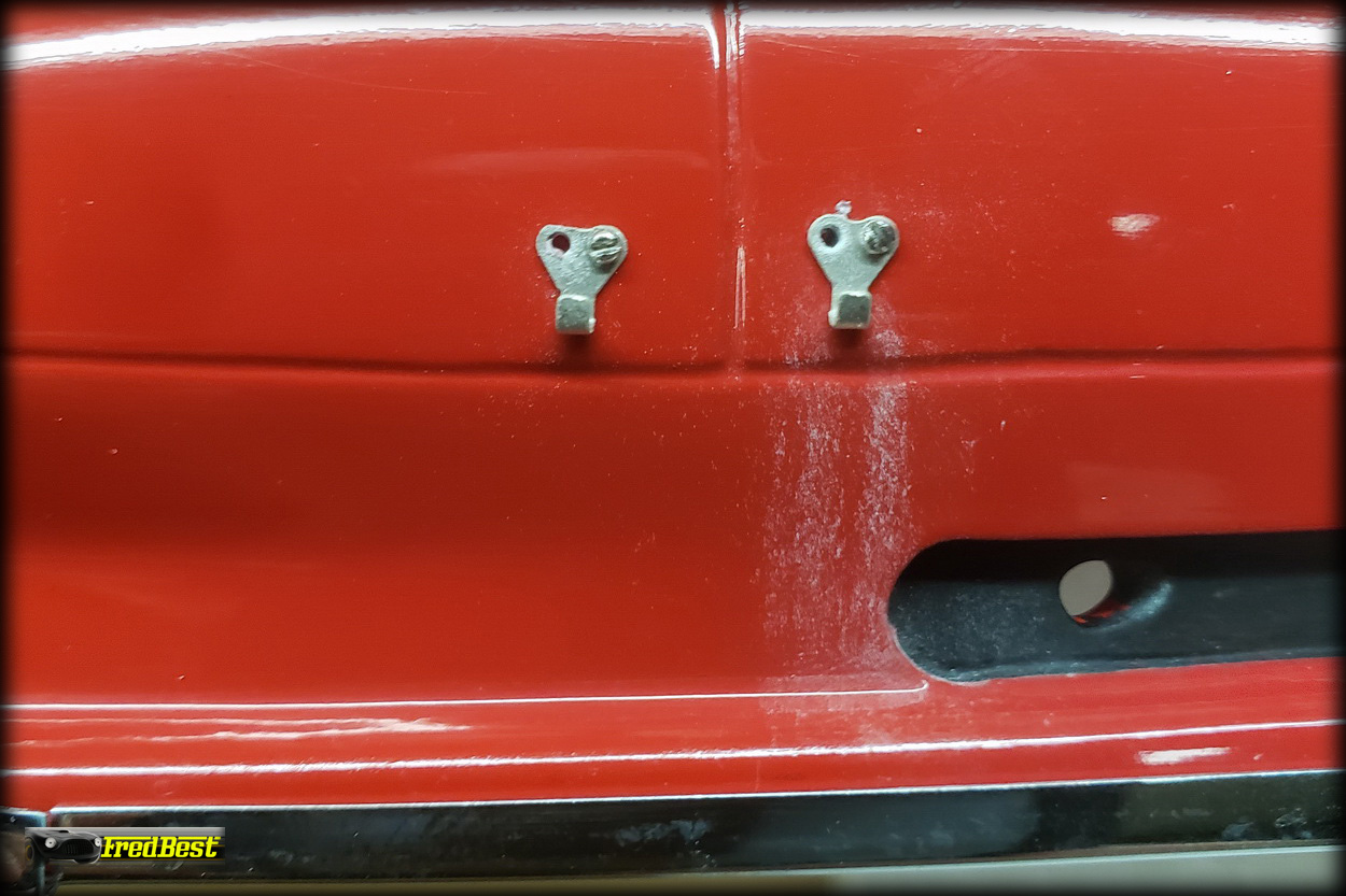 Les galères de visserie ne sont pas encore finies, on s'attaque maintenant aux attaches fermant les capots et la trappe à essence de la dorsale. Alors on découpe, on assemble et on fixe !