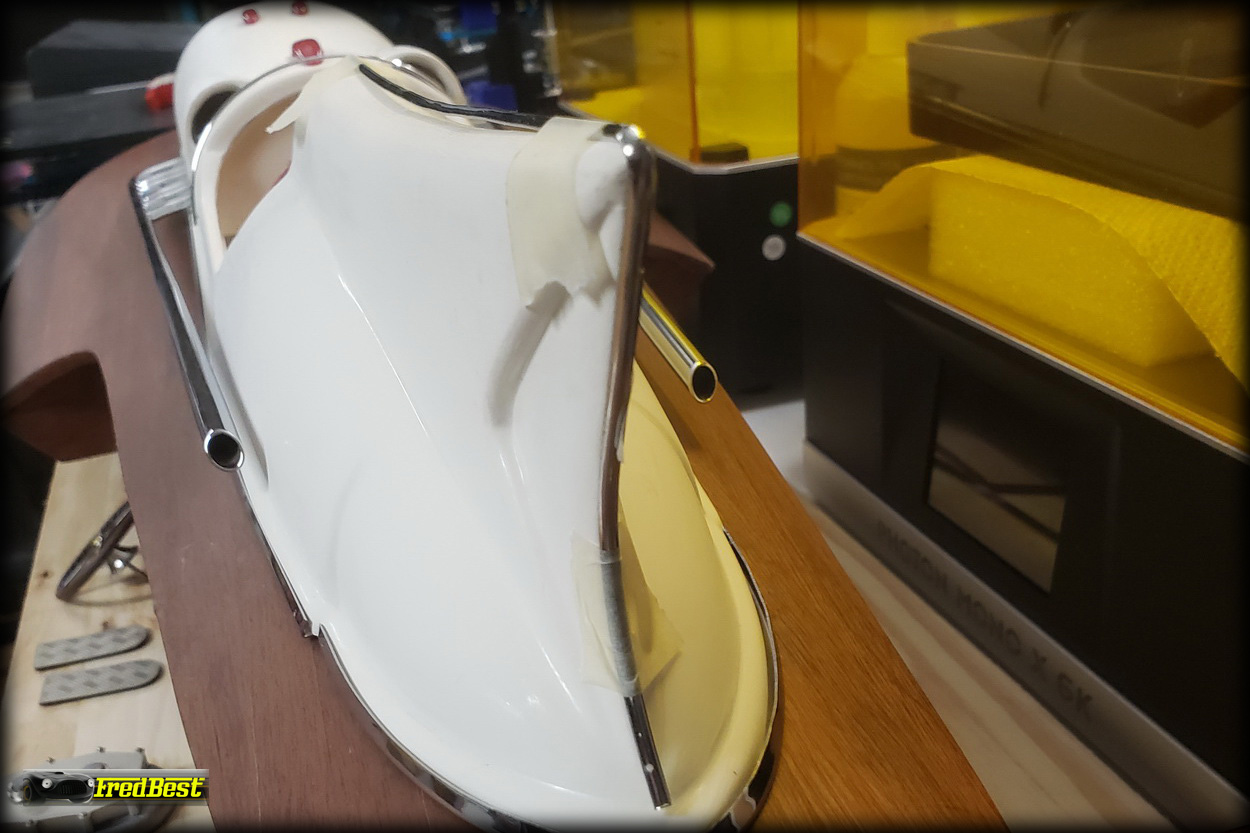 Je me suis penché dans un premier temps vers les sous-ensembles à monter comme le tableau de bord, le cache-moteur apparent dans l'habitacle, la partie du réservoir visible derrière le siège,