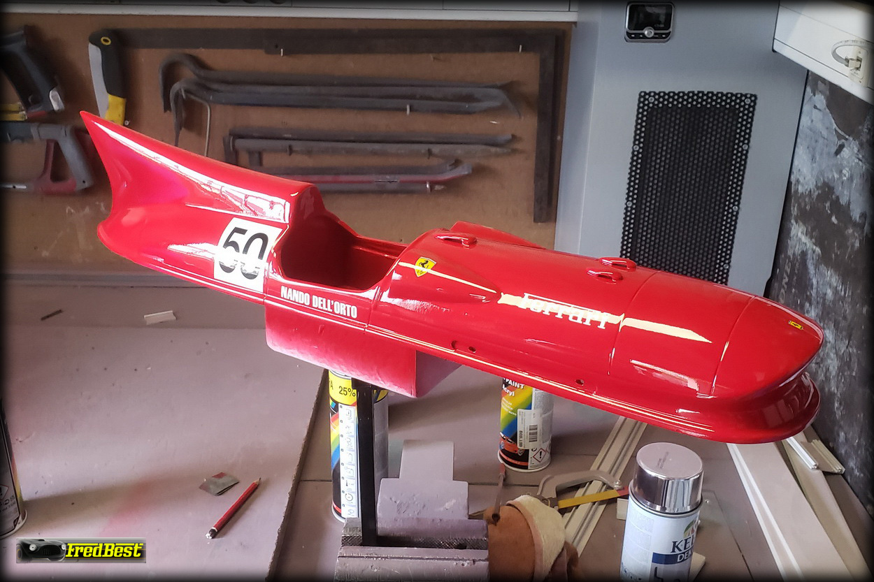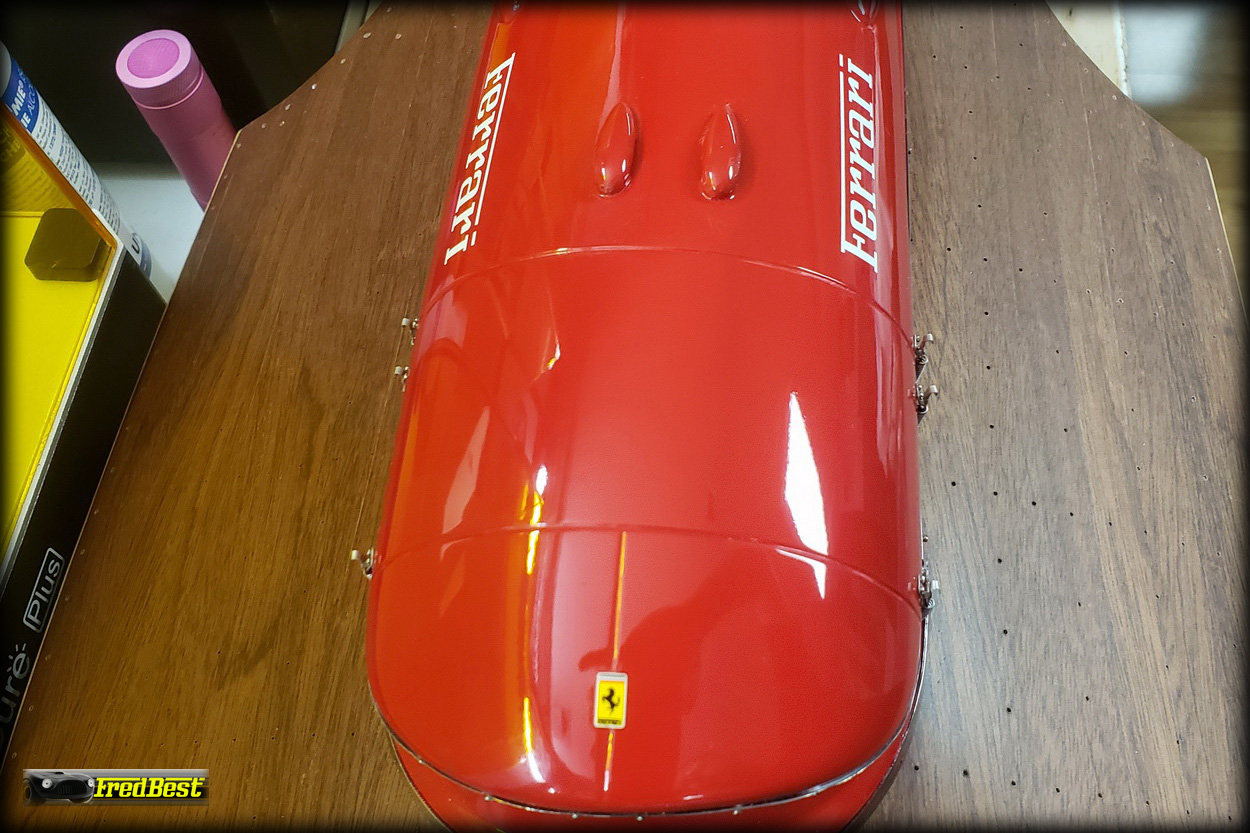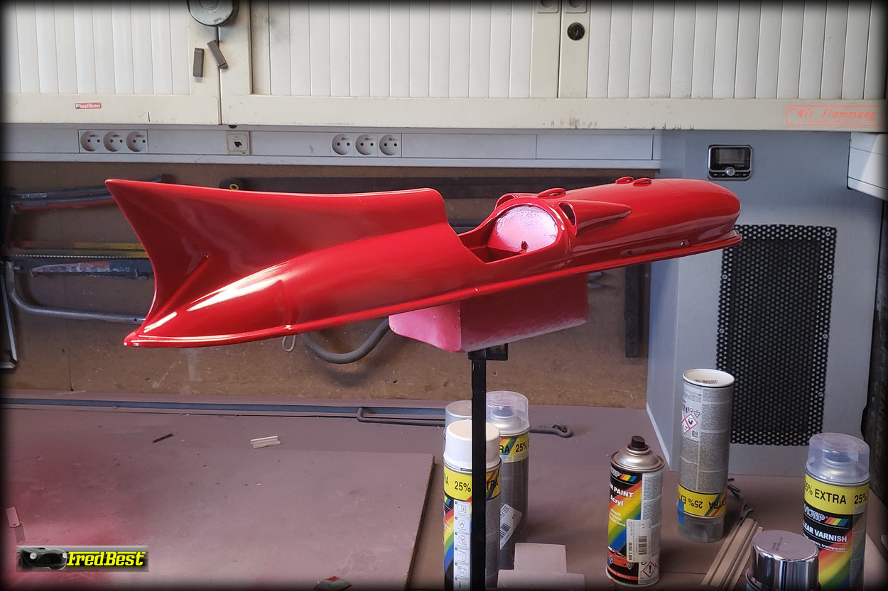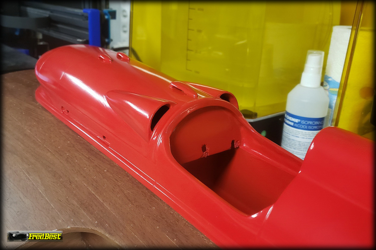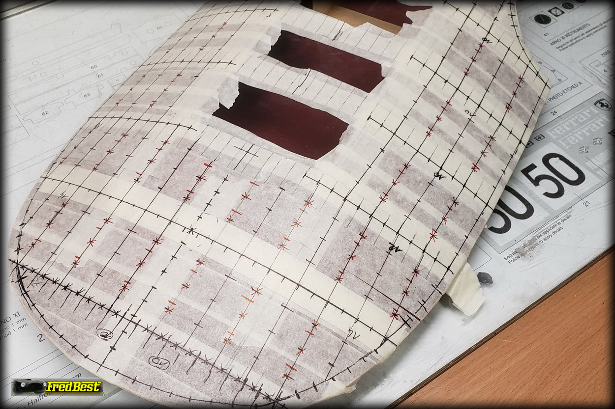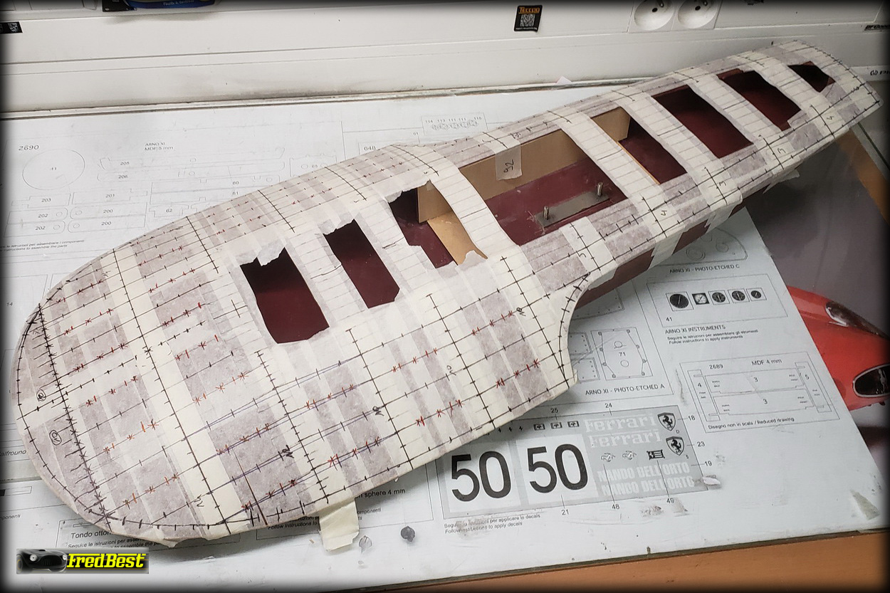 Il est temps d'attaquer la préparation de la carrosserie, avec la pose des excroissances sur le capot moteur, le perçage des trous de sortie des collecteurs d'échappement ainsi que ceux des vis