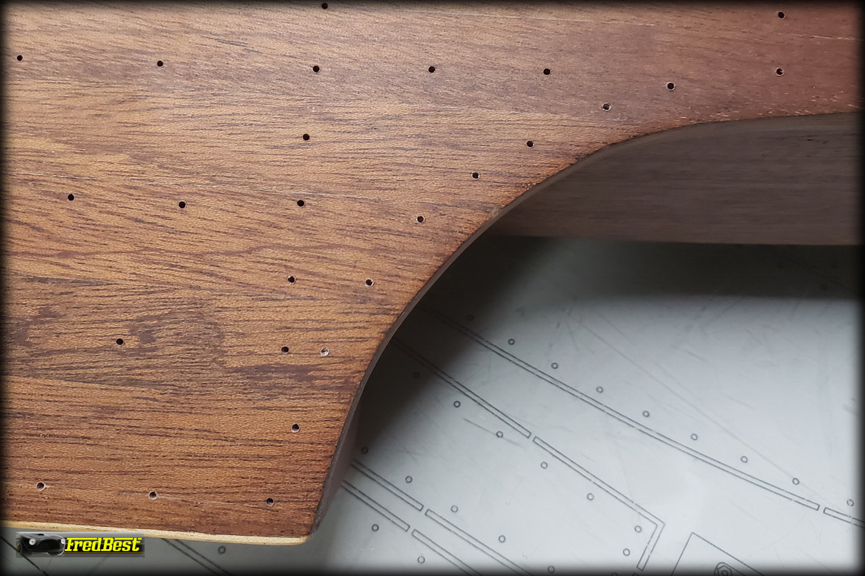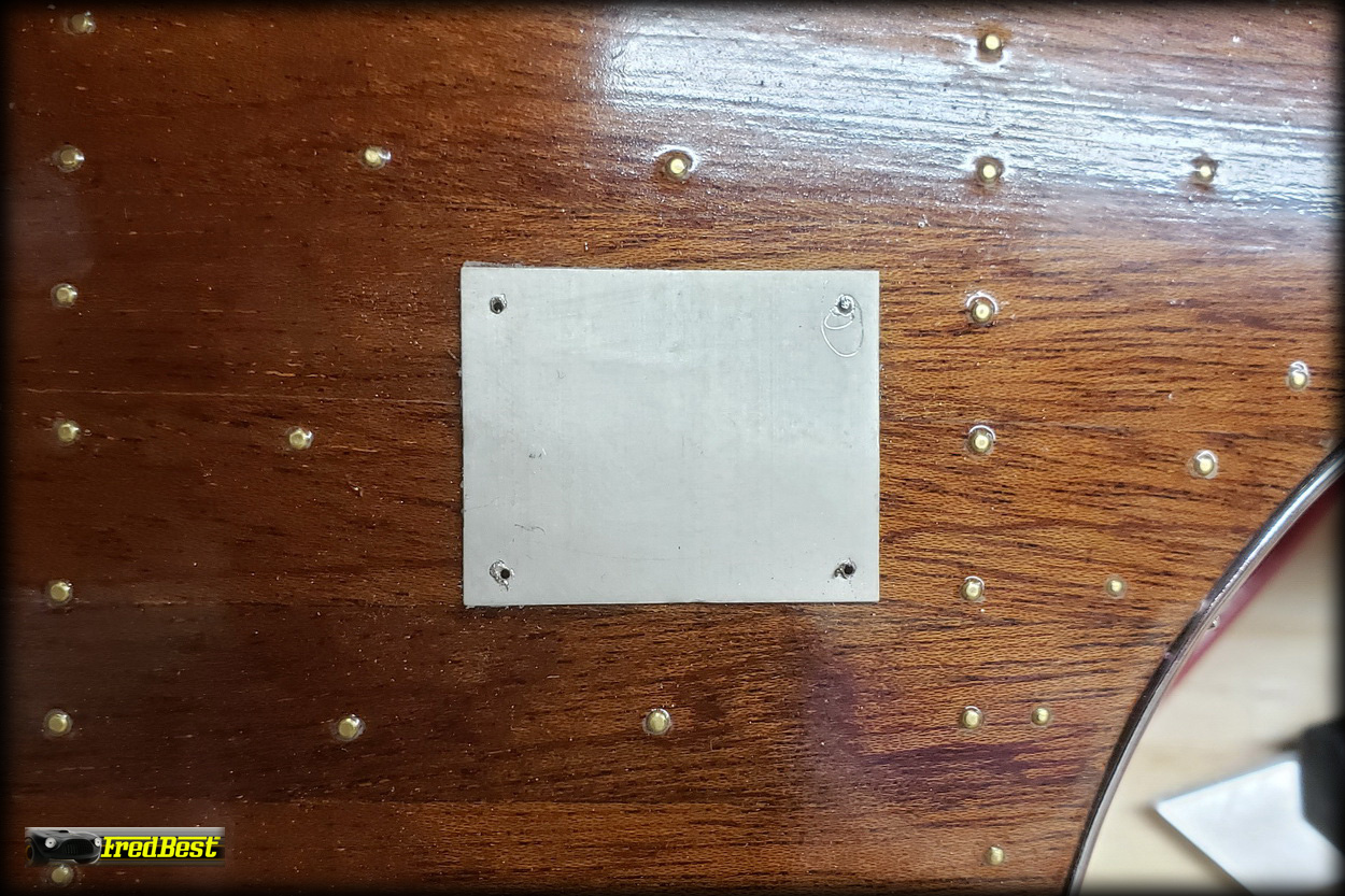Pour plus de réalisme, j'ai voulu ajouter les vis sur les trappes en alu à Babord et Tribord. Malheureusement, le forêt a fait quelques zig-zags en haut à droite, et les trous ne