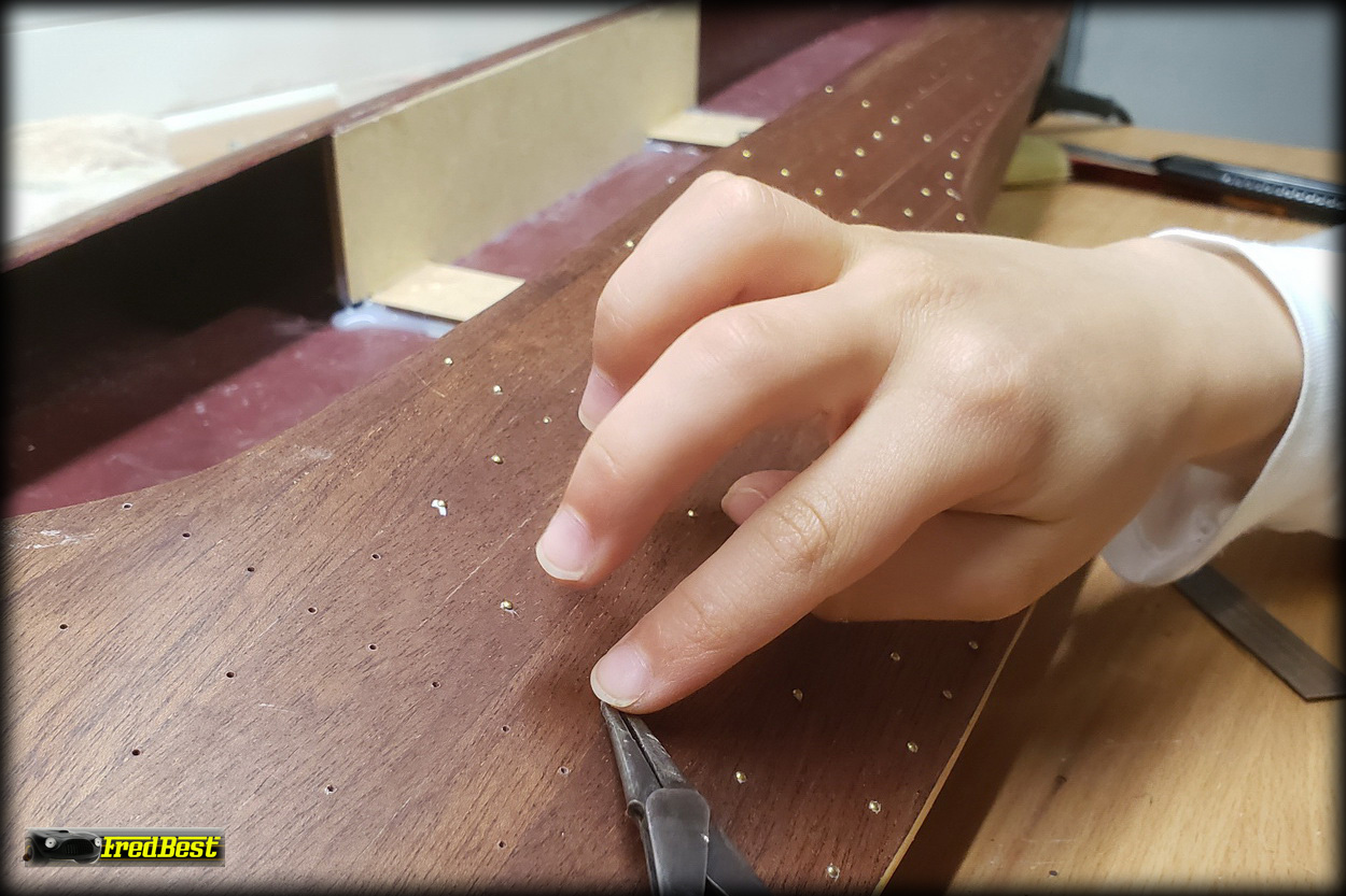 c'est déjà relativement galère, mais les concepteurs ont fait l'impasse sur l'emplacement de tous les clous visibles sur la coque, ils n'en parlent nulle part. Pourtant ces clous sont présents dans le kit,
