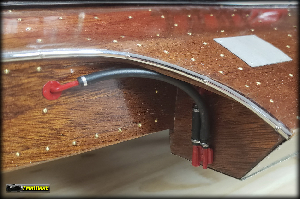 L'âme du fil pour fabriquer les coudes et l'isolant pour simuler le tuyau, un p'tit coup de rouge et c'est parfait. Le côté babord n'est pas appareillé mais tout est prévu.