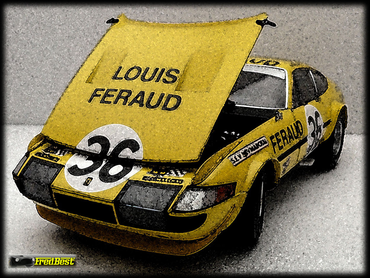 Voici la 365 GTB/4 “Competizione”, châssis 15373. C’est la 7ème des 15 voitures produites par Ferrari, la 2ème de la série de 1972.
