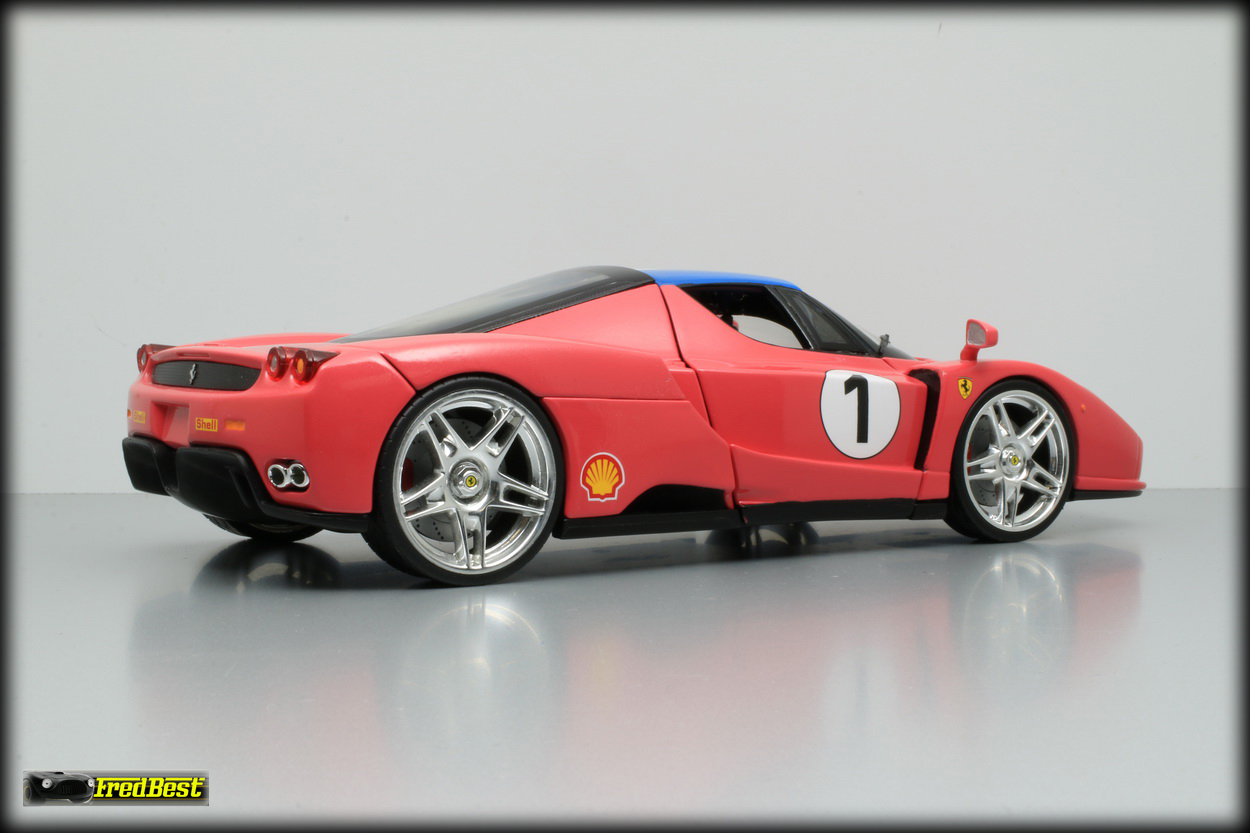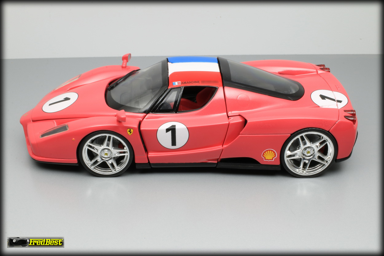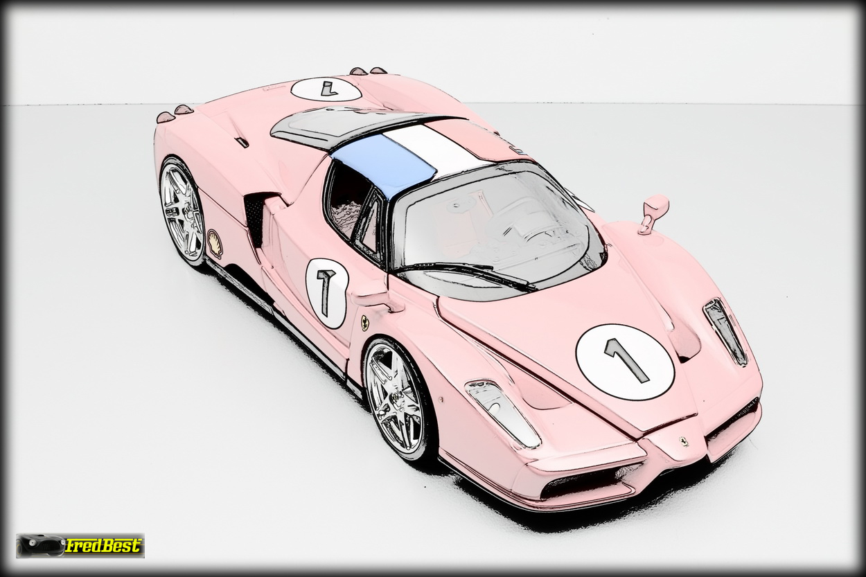 Voici une réalisation peu ordinaire puisque c'est la première Ferrari rose à intégrer ma collection. Pas si excentrique que cela puisqu'un propriétaire Japonais d'Enzo a fait repeindre la sienne de