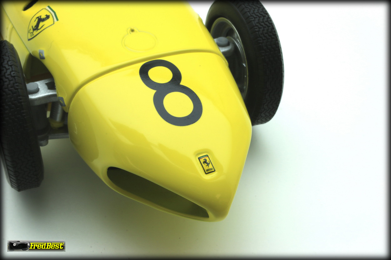 CMR reproduit la fameuse 156 F1 en jaune avec numéro 8 sous la référence CMR171. Si elle n'est pas à la hauteur de ses consoeurs Exoto ou CMC, elle reste une miniature relativement homogène, surtout pour un tarif contenu.