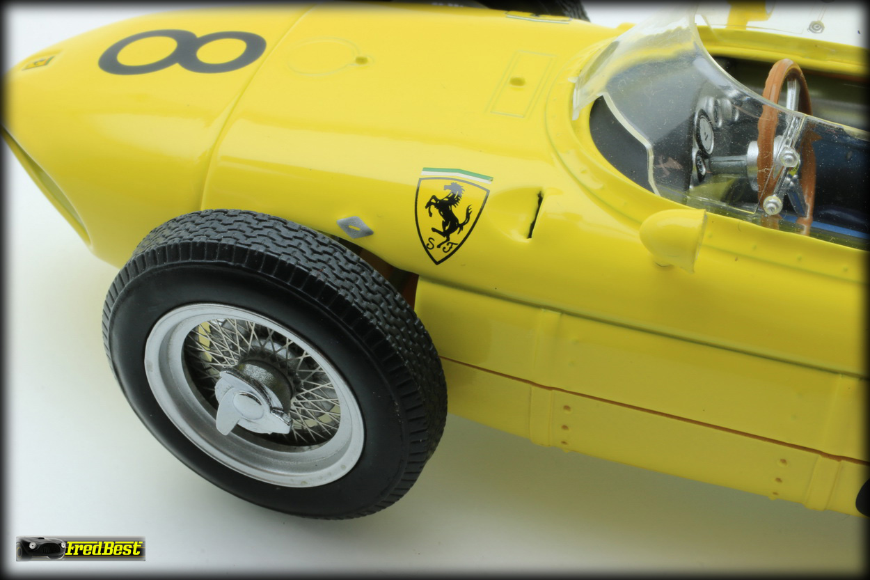 Confiée par Ferrari aux mains du belge Olivier Gendebien pour le GP de Formule 1 de Belgique 1961, cette 156 F1 "Sharknose" (châssis 0002) est un peu moins puissante et légèrement plus lourde