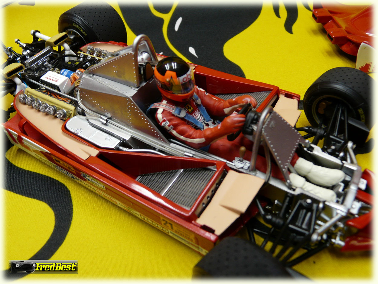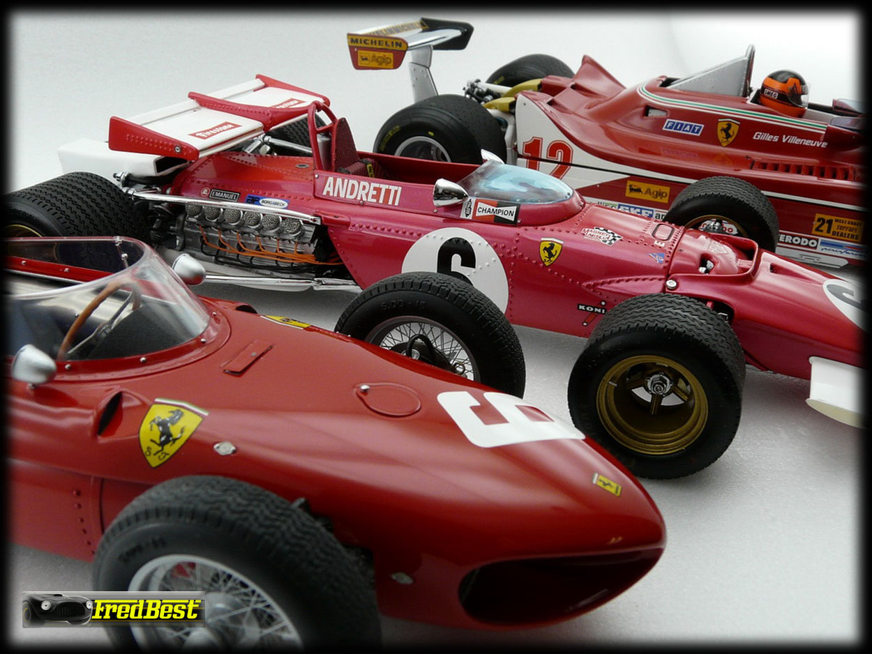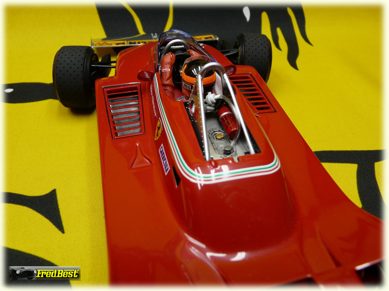 La miniature présentée ici est la Ferrari 312 T4 numéro 12, utilisée par Gilles Villeneuve avec laquelle il gagnera à Kyalami le 3 mars,