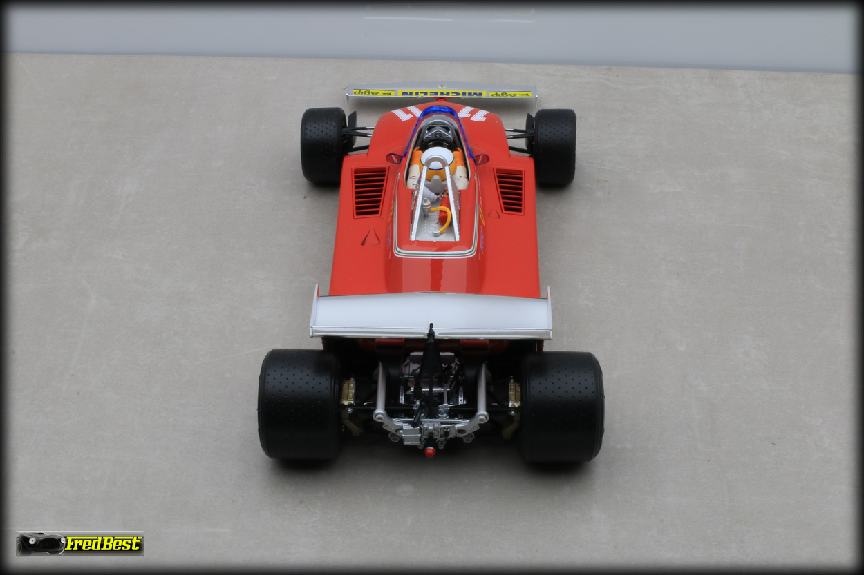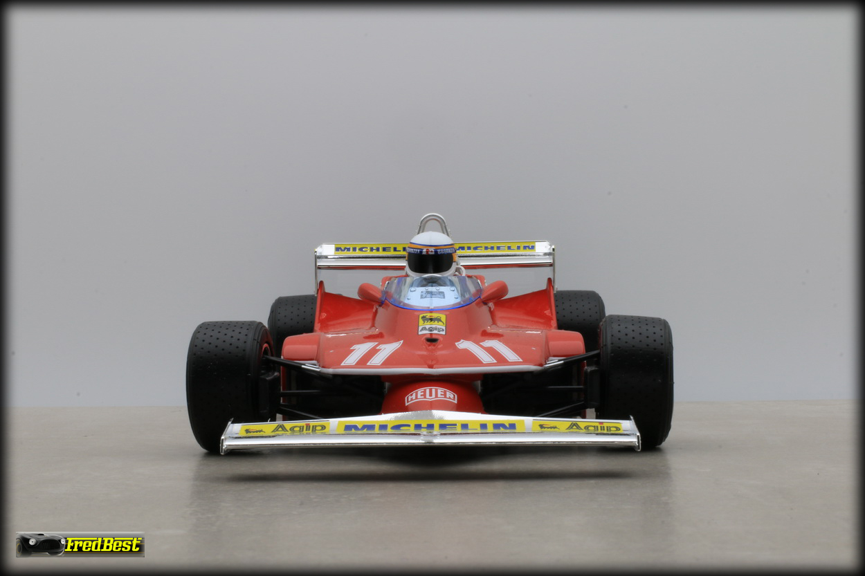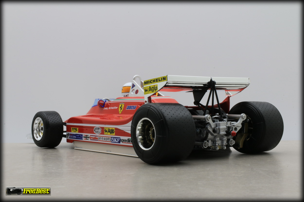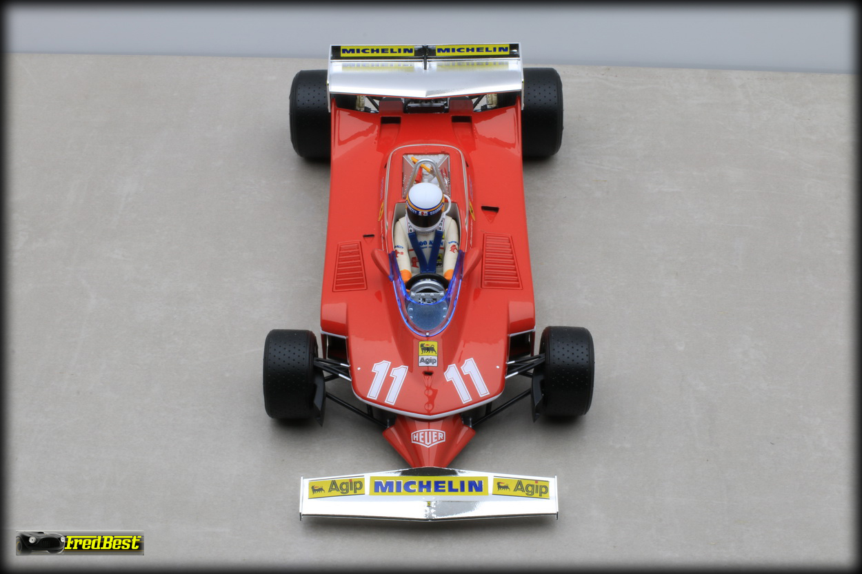 Voici la 312T4 n°11 de Jody Scheckter, avec laquelle il remportera le Grand Prix de Monaco en 1979. Courant 2025, Bburago a l'excellente idée de nous la reproduire avec son aileron arrière si particulier, celui que Ferrari