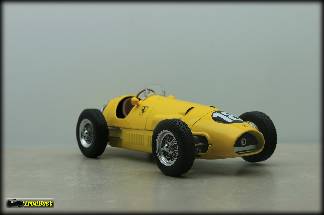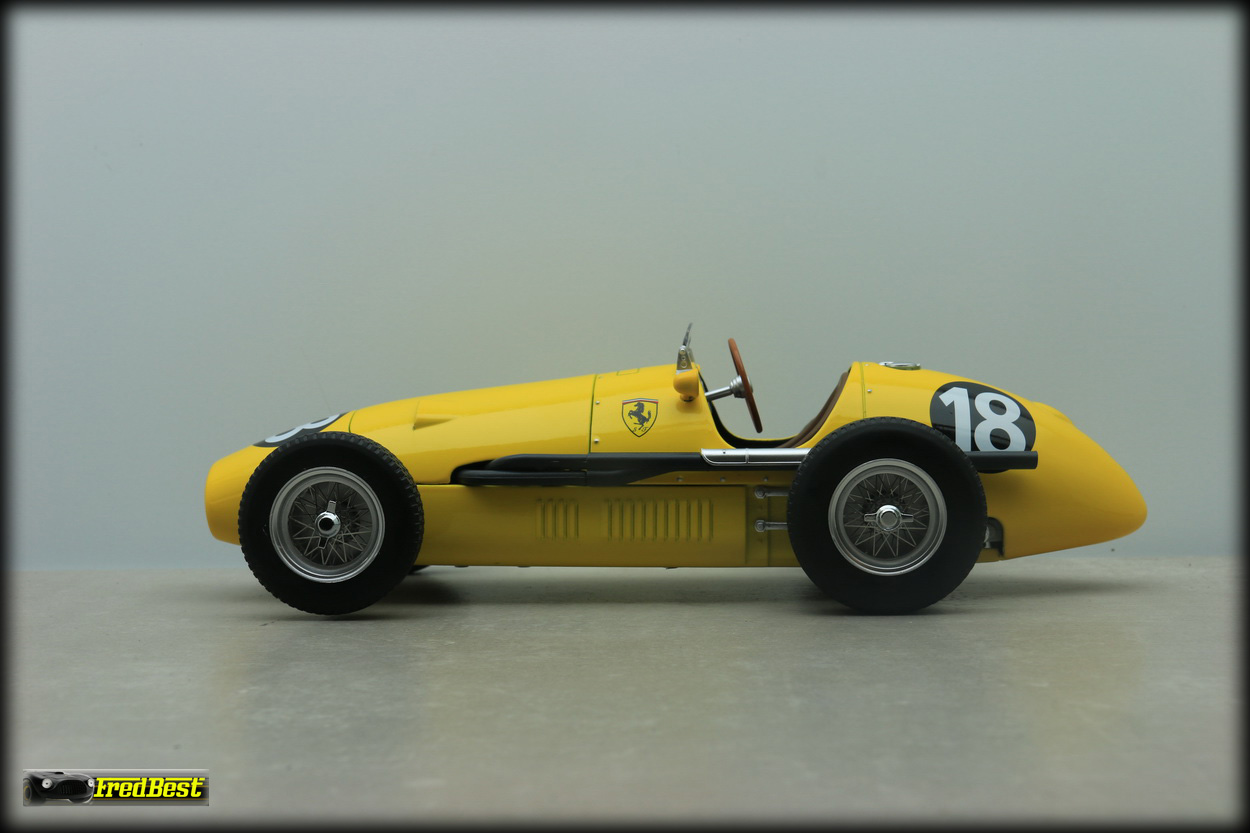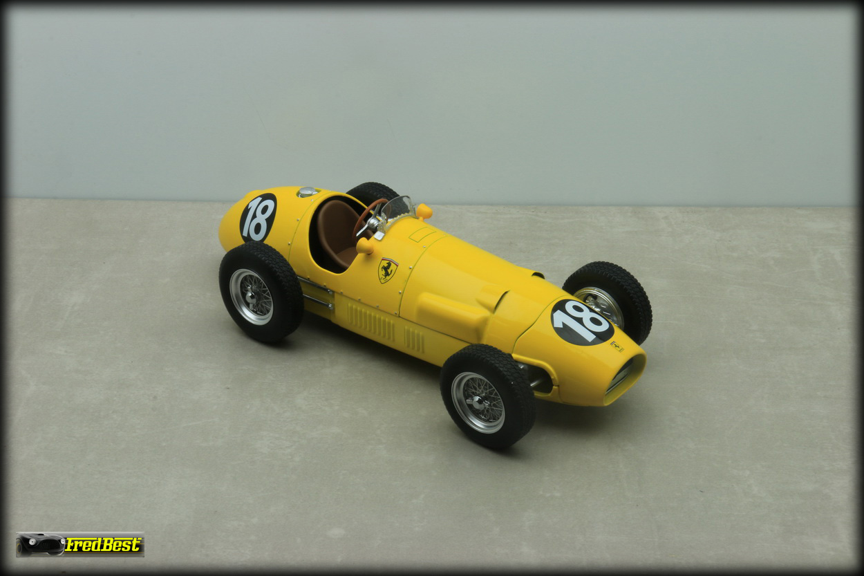 Au 1/18, peu de reproducteurs se sont penchés sur cette Ferrari et sa couleur si particulière. Il y a bien eu Exoto qui a commercialisé la #15 du Gp de Grande Bretagne 1954, mais elle est devenue très rare et surtout très chère.