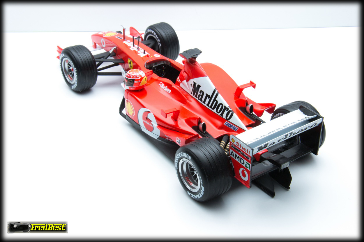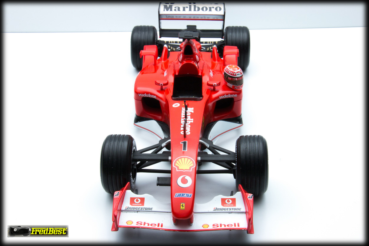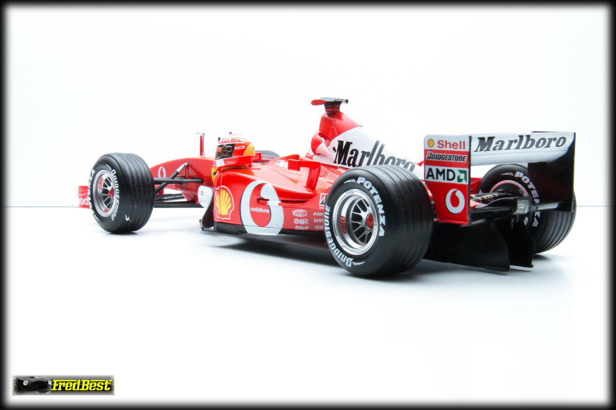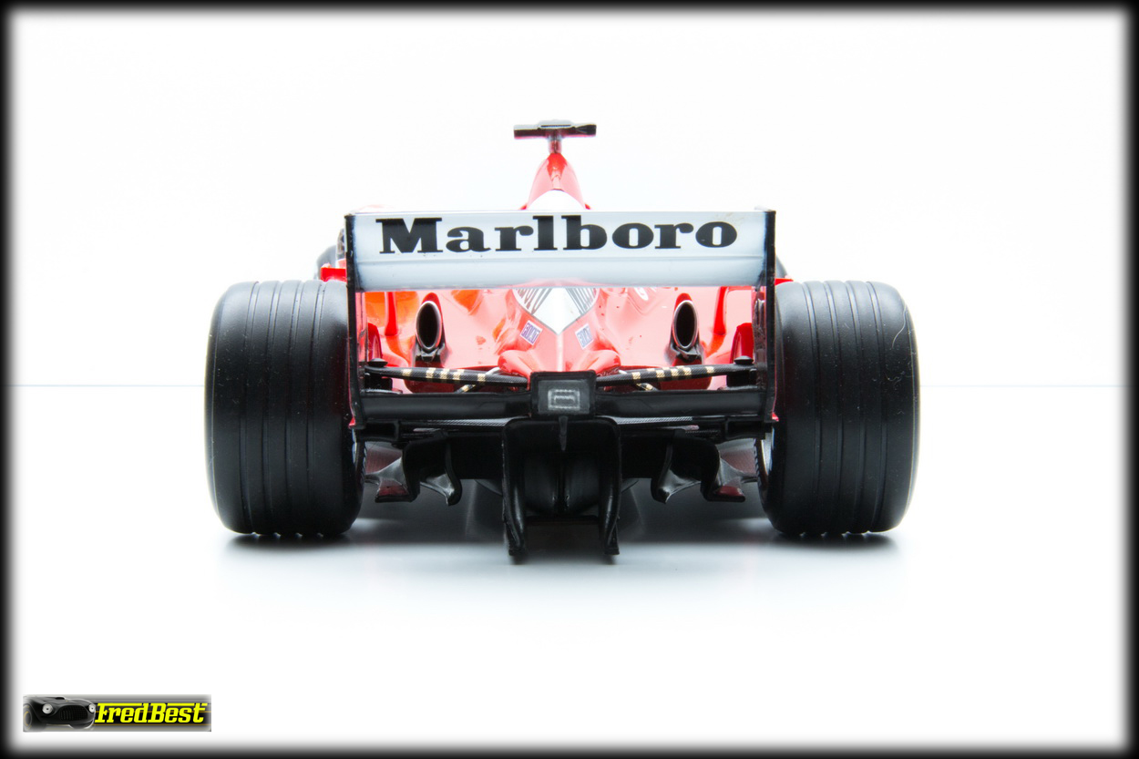 Reproduite par Hotweels, référence 54626, Michael Schumacher. Pilote retiré, casque scotché, ajout de décalcomanies Marlboro.